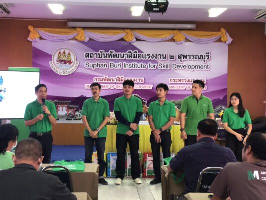 วันนี้(27 มี.ค.67) นายสมศักดิ์ สุขวัฑฒโก ผู้อำนวยการสถาบันพัฒนาฝีมือแรงงาน 2 สุพรรณบุรี กล่าวว่า กรมพัฒนาฝีมือแรงงาน ได้บูรณาการความร่วมมือระหว่างหน่วยงานภาครัฐและภาคเอกชนตามแนวทางประชารัฐของรัฐบาลและกระทรวงแรงงาน โดย บริษัท จระเข้ คอร์ปอเรชั่น จำกัด และ บริษัท เค เซอรา จำกัด ได้ลงนามความร่วมมือ ในบันทึกข้อตกลงว่าด้วยการพัฒนาฝีมือแรงงานกลุ่มช่างก่อสร้าง กับ กรมพัฒนาฝีมือแรงงาน