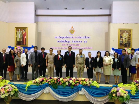 จากการที่ประเทศไทยเปลี่ยนแนวทางการขับเคลื่อนประเทศไปสู่เศรษฐกิจที่ขับเคลื่อนด้วยนวัตกรรม (Value-Based Economy) เพื่อก้าวข้ามกับดักประเทศรายได้ปานกลาง ภายใต้วิสัยทัศน์เชิงนโยบายไทยแลนด์ 4.0 เมื่อบริบทของเศรษฐกิจและสังคมเกิดการเปลี่ยนแปลง ส่งผลให้ทุกภาคส่วนในสังคม ต้องร่วมกันชี้นำตอบสนองและขับเคลื่อนการเปลี่ยนแปลง ซึ่งสถาบันอุดมศึกษาเป็นกลไกหลักที่สำคัญยิ่ง ที่สังคมให้ความสำคัญและคาดหวังให้มีบทบาทในการขับเคลื่อนการเปลี่ยนแปลง อย่างมีประสิทธิภาพ ด้วยการบริหารและการจัดการการศึกษา ภายใต้ภารกิจหลักคือ การสร้างคนให้เป็นคนดีและเป็นคนเก่งที่มีคุณภาพ ตรงกับความต้องการของสังคม และเพื่อผลักดันขับเคลื่อนปัจจัยสำคัญ ให้สอดคล้องกับเป้าหมายไทยแลนด์ 4.0 เพื่อสร้างความรู้ ความเข้าใจให้กับผู้บริหาร คณาจารย์และบุคลากรทางการศึกษา ถึงบริบทการเปลี่ยนแปลงความเป็นสากลและภาวะการแข่งขัน กับการจัดการศึกษาของไทย การปรับตัวของไทยภายใต้นโยบายไทยแลนด์ 4.0 และมหาวิทยาลัยกับการจัดการการศึกษา เพื่อเพิ่มความสามารถในการแข่งขัน และสามารถประยุกต์องค์ความรู้ที่ได้รับฟัง นำไปใช้ในการบริหารและจัดการการศึกษา เพื่อตอบสนองวิสัยทัศน์เชิงนโยบายและสร้างประโยชน์ให้กับสังคมต่อไป.