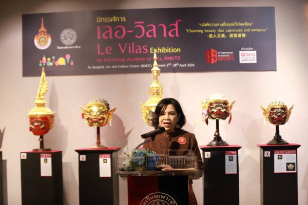 วันพุธที่ 3 เมษายน 2567 มทร.รัตนโกสินทร์ นำโดย รศ.ดร.อุดมวิทย์ ไชยสกุลเกียรติ อธิการบดี ร่วมพิธีเปิด และกล่าวรายงานวัตถุประสงค์การจัดนิทรรศการ เลอ-วิลาส (Le Vilas By Poh-Chang Academy of Arts, RMUTR) “เสน่ห์ความงามที่ปลุกเร้าให้หลงใหล” จัดขึ้นโดย มทร.รัตนโกสินทร์ วิทยาลัยเพาะช่าง ร่วมกับมูลนิธิเอสซีจี ซึ่งได้รับเกียรติจาก แพทย์หญิงเพชรดาว โต๊ะมีนา ที่ปรึกษารัฐมนตรีว่าการกระทรวงการอุดมศึกษา วิทยาศาสตร์ วิจัยและนวัตกรรม เป็นประธานในพิธีเปิด และร่วมรับชม การแสดงโขน โดยนักศึกษาวิทยาลัยเพาะช่าง ซึ่งการจัดนิทรรศการในครั้งนี้ มีวัตถุประสงค์เพื่อเป็นการทำนุบำรุงศิลปะการแสดงชั้นสูงของไทย “โขน” ที่แสดงออกถึงศิลปวัฒนธรรมอันทรงคุณค่า และมีประวัติความเป็นมายาวนานนับร้อยปี ช่างส่วนใหญ่จะได้รับการฝึกฝน และถ่ายทอดมาจากสกุลช่างในแต่ละสกุลสืบต่อมา จวบจนปัจจุบัน อีกทั้งเป็นการมุ่งเน้นสร้างเสริมในเรื่องของ creative economy ตามนโยบายหลักของมหาวิทยาลัยอีกด้วย ทั้งนี้ ภายในงานได้รวบรวมผลงานหัตถศิลป์ ทั้งศิษย์เก่า ศิษย์ปัจจุบัน คณาจารย์ และครูศิลป์แห่งแผ่นดิน มาจัดแสดงและเผยแพร่ผลงานหัวโขนผ่านนิทรรศการ อันสุดวิจิตรบรรจง อีกทั้งกิจกรรม workshop มากมาย ไม่มีค่าใช้จ่าย จากวิทยาลัยเพาะช่าง ณ ห้อง New Gen Space : Space for All Generation ชั้น 3 หอศิลปวัฒนธรรมแห่งกรุงเทพมหานคร (BACC) ระหว่างวันที่ 2 – 28 เมษายน 2567 เวลา 10.00-20.00 น. (หยุดทุกวันจันทร์)