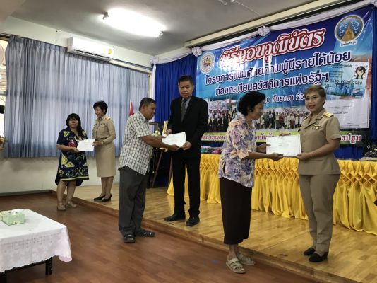 ที่สถาบันพัฒนาฝีมือแรงงาน 16 นครปฐม นายวิชัย ผิวสอาด ผู้ตรวจราชการกรมพัฒนาฝีมือแรงงาน เป็นประธานในพิธีมอบวุฒิบัตรผู้ผ่านการฝึกอบรม โครงการเพิ่มศักยภาพผู้มีรายได้น้อยที่ลงทะเบียนสวัสดิการแห่งรัฐ เพื่อสร้างงาน สร้างอาชีพ เพิ่มรายได้ และความมั่นคงในชีวิต จำนวน 240 คน โดยมีผู้อำนวยการสถาบันพัฒนาฝีมือแรงงาน 16 นครปฐม พร้อมด้วย หัวหน้าส่วนราชการสังกัดกระทรวงแรงงาน ให้การต้อนรับ