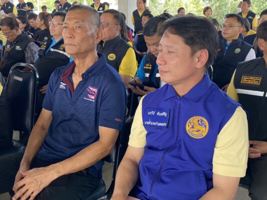 วันที่ 11 พฤษภาคม 2567 ร้อยเอก ธรรมนัส พรหมเผ่า รัฐมนตรีว่าการกระทรวงเกษตรและสหกรณ์ ลงพื้นที่ แก้ไขปัญหาการเลี้ยงกุ้ง การปลูกข้าว และการแก้ไขปัญหาประตูระบายน้ำให้กับเกษตรกร โดยมี นายอรรถวุฒิ พึ่งเนียม รองผู้ว่าราชการจังหวัดนครปฐม พร้อมด้วย ดร.จอมขวัญ กลับบ้านเกาะ ผู้ช่วยรัฐมนตรี นายธนสาร ธรรมสอน ประจำสำนัก เลขาธิการนายกรัฐมนตรี นายบุญสิงห์ วรินทร์รักษ์ ที่ปรึกษารัฐมนตรี และนายนรวีร์ ขันธหิรัญ นายอำเภอกำแพงแสน และนายก นิธิโรจน์ พุฒิโชคกิตติกูล นายกห้วยม่วง กำนัน สรกฤช ลาวัณย์วิสุทธิ์ กำนันตำบลห้วยม่วง พร้อมด้วย หัวหน้าส่วนราชการประจำจังหวัดนครปฐม หัวหน้าส่วนราชการอำเภอ ผู้บริหารท้องถิ่น ผู้ใหญ่บ้าน เกษตรกร และชาวจังหวัดนครปฐม ให้การต้อนรับ