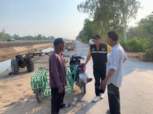 ลงพื้นที่อำเภอดอนเจดีย์ บริเวณคลองชลประทานมะขามเฒ่า เพื่อติดตามสถานการณ์น้ำแล้ง เบื้องต้นพบว่าระดับน้ำในคลองชลประทานมีปริมาณที่สูงขึ้น เพียงพอที่จะสูบน้ำเข้าสวน ไร่ นา
