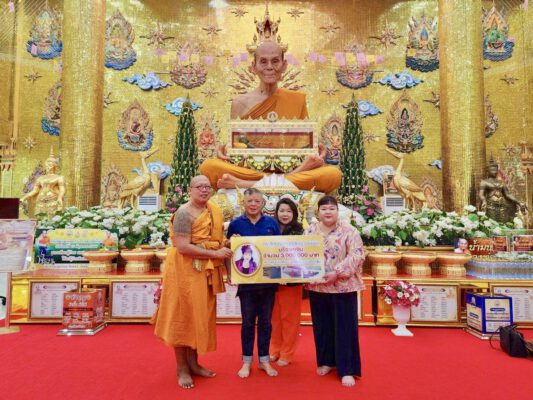เมื่อวันที่ 24 พฤษภาคม 67 ที่หน้าบริเวณหน้ารูปเหมือนหลวงพ่อพูล นั่งบนหนุมานอุ้มโลงแก้วบรรจุสรีระสังขารศาลาหลวงพ่อพูล วัดไผ่ล้อม ต.พระปฐมเจดีย์ อ.เมือง จ.นครปฐม “อิ๋งอ้อย สิทธิวดี กิตติสิทโธ” ในฐานะผู้จัดการมรดกพร้อมน้องสาว ได้เดินทางมากราบสรีระสังขาร พระมงคลสิทธิการ หลวงพ่อพูล อัตตรักโข อดีตเจ้าอาวาสวัดไผ่ล้อม พร้อมกับได้เข้ากราบพระครูปลัดสิทธิวัฒน์ หลวงพี่น้ำฝน เจ้าอาวาสวัดไผ่ล้อม เพื่อนำเงินสดที่เป็นสมบัติของ “อิ๋งอิ๋ง ดร.สิทธิณี กิตติสิทโธ” จำนวน 3 ล้านบาท ถวายให้กับหลวงพี่น้ำฝน เพื่อมอบให้กับมูลนิธิหลวงพ่อพูลในการจัดสร้างศูนย์ไตเทียมวัดไผ่ล้อม สำหรับประชาชนที่มีอาการไตเสื่อมและต้องได้รับฟอกไต