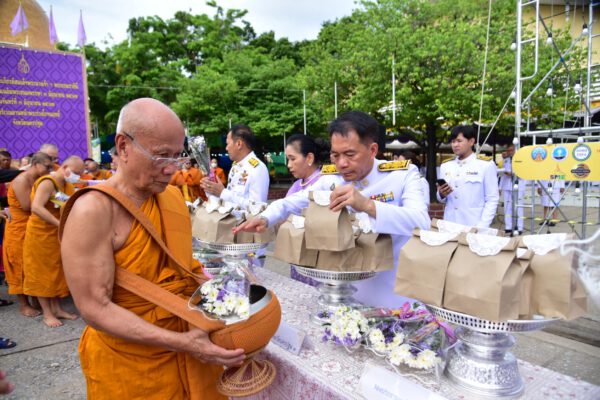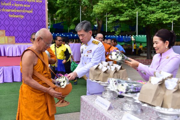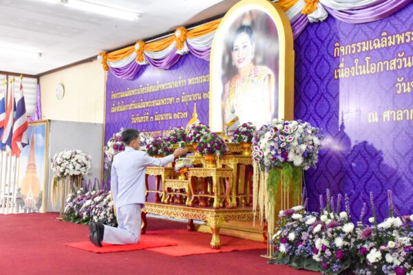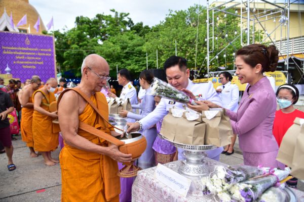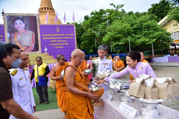 วันที่ 3 มิถุนายน 25567 ที่บริเวณลานหน้าพระร่วงโรจนฤทธิ์ฯ องค์พระปฐมเจดีย์ อำเภอเมือง จังหวัดนครปฐม นายสุรศักดิ์ เจริญศิริโชติ ผู้ว่าราชการจังหวัดนครปฐม พร้อมด้วย นางวราภรณ์ เจริญศิริโชติ นายกเหล่ากาชาดจังหวัด นางสาวอโรชา นันทมนตรี นายธีรยุทธ์ จันทร์ดิษฐวงษ์ นายยงยุทธ สวนทอง นายอรรถวุฒิ พึ่งเนียม รองผู้ว่าราชการจังหวัด หัวหน้าส่วนราชการ ข้าราชการ นักเรียน นักศึกษา และประชาชนชาวจังหวัดนครปฐมทุกหมู่เหล่า ร่วมพิธีเจริญพระพุทธมนต์ และพิธีทำบุญตักบาตรข้าวสาร อาหารแห้ง ถวายแด่พระสงฆ์ สามเณร 99 รูป โดยมีพระธรรมวชิรเจติยาจารย์ ที่ปรึกษาเจ้าคณะภาค 14 รองเจ้าอาวาสวัดพระปฐมเจดีย์ ราชวรมหาวิหาร นำพระสงฆ์รับบิณฑบาต เพื่อเฉลิมพระเกียรติสมเด็จพระนางเจ้าฯ พระบรมราชินี เนื่องในโอกาสวันเฉลิมพระชนมพรรษา 3 มิถุนายน 2567 อีกทั้งเพื่อแสดงออกถึงความจงรักภักดี และสำนึกในพระมหากรุณาธิคุณ ตลอดจนเป็นการเทิดทูนสถาบันพระมหากษัตริย์ ด้วยการทำกิจกรรมทางพระพุทธศาสนาร่วมกัน โดยมีสถาบันพระมหากษัตริย์เป็นศูนย์รวมจิตใจของคนไทยทั้งชาติ