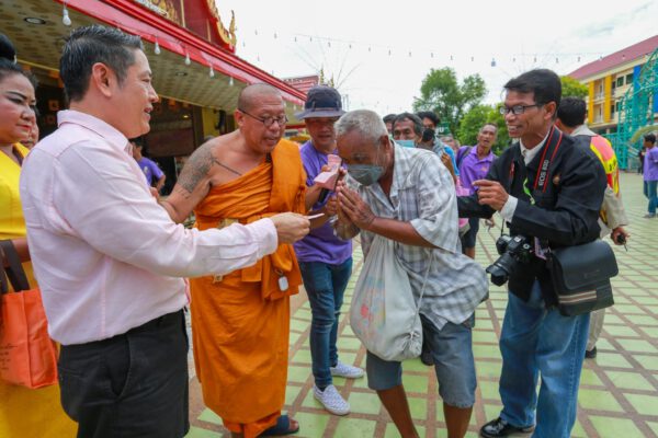 คอหวย ส่องเลขหางประทัด งานถวายมุทิตาจิตสักการะ หลวงพี่น้ำฝน อายุ 52 ปี หลังกระแสเลขดัง กุมารสมบัติ ทำคอหวยได้โชคสามตัวตรงงวดที่ผ่านมา ขณะที่หลวงพี่น้ำฝนจัดแจกทานเป็นอาหารเช้าและอาหารกลางวัน รวมถึงบี Says แจกเงินคนจน ทำให้บรรยากาศบรรยากาศในวัดไผ่ล้อมคึกคักเป็นพิเศษ