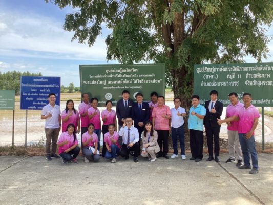 ณ ศูนย์เรียนรู้ลดโลกร้อนนาแปลงใหญ่ เกษตรสมัยใหม่ใส่ใจสิ่งแวดล้อม ตำบลเดิมบาง อำเภอเดิมบางนางบวช จังหวัดสุพรรณบุรี