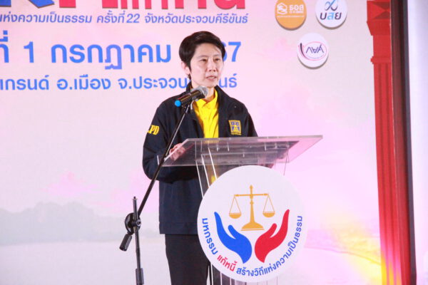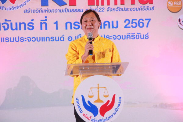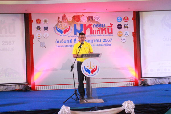 เมื่อเวลา 10.30 น. วันที่ 1 ก.ค.67 ที่ โรงแรมประจวบแกรนด์ อ.เมือง จ.ประจวบคีรีขันธ์ นายยู่สิน จินตภากร ผู้ช่วยรัฐมนตรีว่าการกระทรวงยุติธรรม เป็นประธานพิธีเปิดงาน “มหกรรมแก้หนี้ สร้างวิถีแห่งความเป็นธรรม” ครั้งที่ 22 จ.ประจวบคีรีขันธ์ จัดโดย กรมคุ้มครองสิทธิและเสรีภาพ กระทรวงยุติธรรม ร่วมกับสำนักงานยุติธรรมจังหวัดประจวบฯ โดยมี นางสาวดวงดาว เกียรติพิศาลสกุล รองอธิบดีกรมคุ้มครองสิทธิและเสรีภาพ กล่าวรายงาน มี นายปรีดา สุขใจ ปลัดจังหวัดประจวบคีรีขันธ์ เป็นผู้แทนผู้ว่าราชการจังหวัดฯ กล่าวต้อนรับ และมี นางระวีวรรณ หงส์ขจรโพธิ์ทอง ผู้พิพากษาหัวหน้าศาลจังหวัดประจวบฯ น.ส.กชวรรณ จันทร์เณร อัยการจังหวัด สำนักงานอัยการคุ้มครองสิทธิและช่วยเหลือทางกฎหมายและการบังคับคดีจังหวัดฯ นายอุดมศักดิ์พสิณ เย็นใจ , น.ส.พรพิมล สวัสดิผล รองอัยการจังหวัดฯ นายวสันต์ เภรีวิค ยุติธรรมจังหวัดประจวบฯ นายรณกร พรหมอินทร์ ผู้อำนวยการสำนักงานบังคับคดีจังหวัดฯ นายบรรพต รัตนจันทร์ ผู้บัญชาการเรือนจำจังหวัด นางพิศมัย แก้วแจ่มใส คลังจังหวัดฯ น.ส.กนกวรรณ ใจกล้า ผอ.สำนักงานคุมประพฤติ สาขาหัวหิน พ.ต.อ.ภษรุฒจ์ แสงอากาศ ผกก.(สอบสวน) ภ.จว. ผู้แทน ผบก.ตร.ภ.จว.ประจวบฯ หัวหน้าส่วนราชการ ข้าราชการ เจ้าหน้าที่หน่วยงานในสังกัดกระทรวงยุติธรรม ผู้แทนสถานีตำรวจทุก สภ.ใน ภ.จว.ประจวบฯ ผู้แทนสถาบันการเงิน ผู้แทน กยศ. ผู้ไกล่เกลี่ยประจำศูนย์ไกล่เกลี่ยข้อพิพาทภาคประชาชน เครือข่ายอาสาสมัครคุ้มครองสิทธิฯ เครือข่ายยุติธรรมชุมชน ภาคีเครือข่ายทุกภาคส่วน คณะอาสาสมัครคุมประพฤติ องค์กรปกครองส่วนท้องถิ่น อสม. และประชาชนผู้เป็นลูกหนี้สถาบันการเงินและลูกหนี้ กยศ. ที่พร้อมจะเข้าไกล่เกลี่ยหนี้ เข้าร่วม