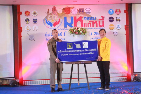 ประกอบด้วย 1.กองทุนเงินให้กู้ยืมเพื่อการศึกษา (กยศ.) 2.ธนาคารออมสิน 3.ธนาคารเพื่อการเกษตรและสหกรณ์การเกษตร (ธ.ก.ส.) 4.ธนาคารอาคารสงเคราะห์ ( ธอส.) 5.ธนาคารกรุงไทย จำกัด (มหาชน) 6.บรรษัทประกันสินเชื่ออุตสาหกรรมขนาดย่อม (บสย.) 7.ธนาคารไทยพาณิชย์ จำกัด (มหาชน) แยกเป็นก่อนฟ้อง จำนวน 122 ราย หลังมีคำพิพากษา จำนวน 83 ราย ทุนทรัพย์กว่า 76,388,704.44 บาท พร้อมมอบป้ายศูนย์ไกล่เกลี่ยภาคประชาชนสถานีตำรวจ เป็นการบูรณาการร่วมระหว่างกรมคุ้มครองสิทธิและเสรีภาพกับสำนักงานตำรวจแห่งชาติ เพื่อขับเคลื่อนกระบวนการยุติธรรมทางเลือกให้แก่ประชาชน ในทุกพื้นที่เพื่อเป็นการอำนวยความยุติธรรมให้กับประชาชนอย่างทั่วถึง สะดวก รวดเร็ว และประหยัดค่าใช้จ่าย จะตั้งให้ครบทุกสถานีตำรวจในพื้นที่