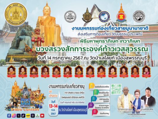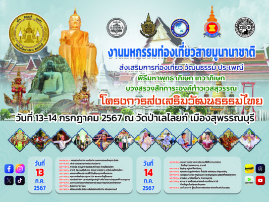 ทั้งนี้ ได้รับเกียรติจาก นายณัฐภัทร สุวรรณประทีป ผู้ว่าราชการจังหวัดสุพรรณบุรี เป็นประธานในพิธี จึงขอเชิญชวนประชาชน ร่วมงานมหกรรมท่องเที่ยวสายมูนานาชาติ ส่งเสริมการท่องเที่ยว วัฒนธรรม ประเพณี ระหว่างวันที่ ๑๓ – ๑๔ กรกฎาคม ๒๕๖๗ ณ วัดป่าเลไลยก์วรวิหาร อำเภอเมืองสุพรรณบุรี จังหวัดสุพรรณบุรี