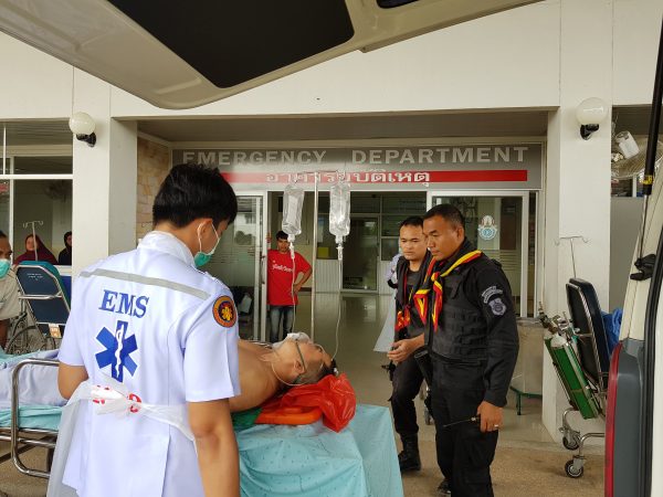 วันนี้ 26 ธ.ค. 60 เวลา 09.30 น. ร.ต.ท.กิตติ ใจหาญ รองสารวัตรสืบสวนสอบสวน สภ.ศรีสาคร จ.นราธิวาส รับแจ้งเกิดเหตุคนร้ายใช้อาวุธกราดยิงในใส่รถยนต์ของเจ้าหน้าที่ ทพ.4912 หน่วยเฉพาะกิจทหารพรานที่ 49 ขณะขับผ่านในพื้นที่ บ.ดาฮง ม.4 ต.เชิงคีรี อ.ศรีสาคร จ.นราธิวาส เป็นเหตุให้มีผู้ได้รับบาดเจ็บรวม 4 ราย โดยเจ้าหน้าที่ทยอยส่งไปยังโรงพยาบาลศรีสาคร และเตรียมส่งต่อมายังโรงพยาบาลนราธิวาสราชนครินทร์
