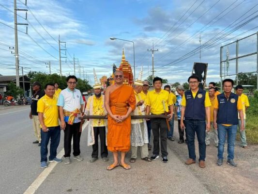 เมื่อวันที่ ๒๐ กรกฎาคม ๒๕๖๗ บ้านหนองกระทุ่ม (หนองถ่ม) อำเภอเดิมบางนางบวช จังหวัดสุพรรณบุรี หนึ่งในกลุ่มชาติพันธุ์ลาวครั่ง สภาวัฒนธรรมจังหวัดสุพรรณบุรี ได้สืบสานประเพณีวัฒนธรรมที่ดีงามของพระพุทธศาสนา เนื่องในวันอาสาฬหบูชา วันเข้าพรรษา ภาคเช้า วัดหนองกระทุ่มจัดสืบสานประเพณีแห่เทียนพรรษา นำโดยกลุ่มชาติพันธ์ลาวครั่งบ้านหนองถ่ม โรงพยาบาลส่งเสริมสุขภาพตำบลหนองกระทุ่ม โรงเรียนวัดหนองกระทุ่ม ผู้นำชุมชน ผู้นำท้องถิ่นท้องที่ พุทธศาสนิกชน เข้าร่วมขบวนแห่ ต่อด้วยการทำบุญ ถวายเทียน ตามประเพณีที่สืบสานกันมา ภาคบ่าย วัดหนองกระทุ่ม ได้จัดโครงการบวชฟรีไม่มีค่าใช้จ่าย ๑ พรรษา ปีนี้มีผู้ประสงค์ร่วมบรรพชาอุปสมบท จำนวน ๗ นาค เพื่อให้พระภิกษุสงฆ์ร่วมจำนำพรรษาตามวัดอารามที่ยังไม่ครบตามพุทธบัญญัติการรับผ้ากฐิน ภาคค่ำ ได้มีการเวียนเทียนถวายเป็นพุทธบูชา