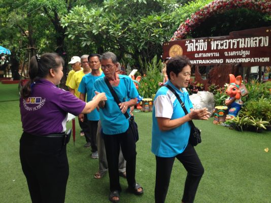 ซึ่งเป็นสถานที่มีชื่อเสียงของจังหวัดนครปฐม โดยการนำของ นายยุทธพงษ์ ฉิมพลิกานนท์ ผู้อำนวยการโรงพยาบาลส่งเสริมสุขภาพตำบลสามบัณฑิต อาจารย์กฤษณา บัวหลาด เลขาชมรมผู้สูงอายุตำบลสามบัณฑิต นางสำนัก ยังบริบูรณ์ ประธานอสม.ตำบลสามบัณฑิต เพื่อเป็นการส่งเสริมพระพุทธศาสนา และเป็นการผ่อนคลายความเครียด ของ นักเรียนโรงเรียนผู้สูงอายุตำบลสามบัณฑิต หลักการทำบุญทางพุทธศาสนา การทำบุญในทางพุทธศาสนาไม่ได้มีเพียงการให้เงิน ให้ทอง หรือให้ทาน ทำบุญกับพระและวัดเท่านั้นบุญหมายถึงการกระทำความดีมาจากภาษาบาลีว่า “ปุญญะ”แปลว่าเครื่องชำระจิตใจให้สะอาดบริสุทธิ์