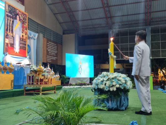 จากนั้นผู้ว่าราชการจังหวัดสุพรรณบุรี นำผู้เข้าร่วมพิธีจุดเทียนชัยถวายพระพรชัยมงคลแด่ เฉลิมพระเกียรติ สมเด็จพระนางเจ้าสิริกิติ์ พระบรมราชินีนาถ พระบรมราชชนนีพันปีหลวง เนื่องในโอกาสมหามงคลเฉลิมพระชนมพรรษา 92 พรรษา 12 สิงหาคม 2567