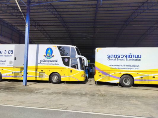 พระบาทสมเด็จพระวชิรเกล้าเจ้าอยู่หัว ทรงพระกรุณาโปรดเกล้าโปรดกระหม่อม ให้มูลนิธิกาญจนบารมี นำหน่วยคัดกรองมะเร็งเต้านมโดยเครื่องเอกซเรย์เต้านมเคลื่อนที่ (Mammogram) ในสตรีกลุ่มเสี่ยงและด้อยโอกาส ๔ หน่วย ๔ ภาค ทั่วประเทศ เฉลิมพระเกียรติ พระบาทสมเด็จพระวชิรเกล้าเจ้าอยู่หัว โครงการคัดกรองมะเร็งเต้านมโดยเครื่องเอกซเรย์เต้านมเคลื่อนที่ (Mammogram) ในสตรีกลุ่มเสี่ยงและด้อยโอกาส เฉลิมพระเกียรติพระบาทสมเด็จพระวชิรเกล้าเจ้าอยู่หัว ในโอกาสพระชนมพรรษา 70 พรรษา