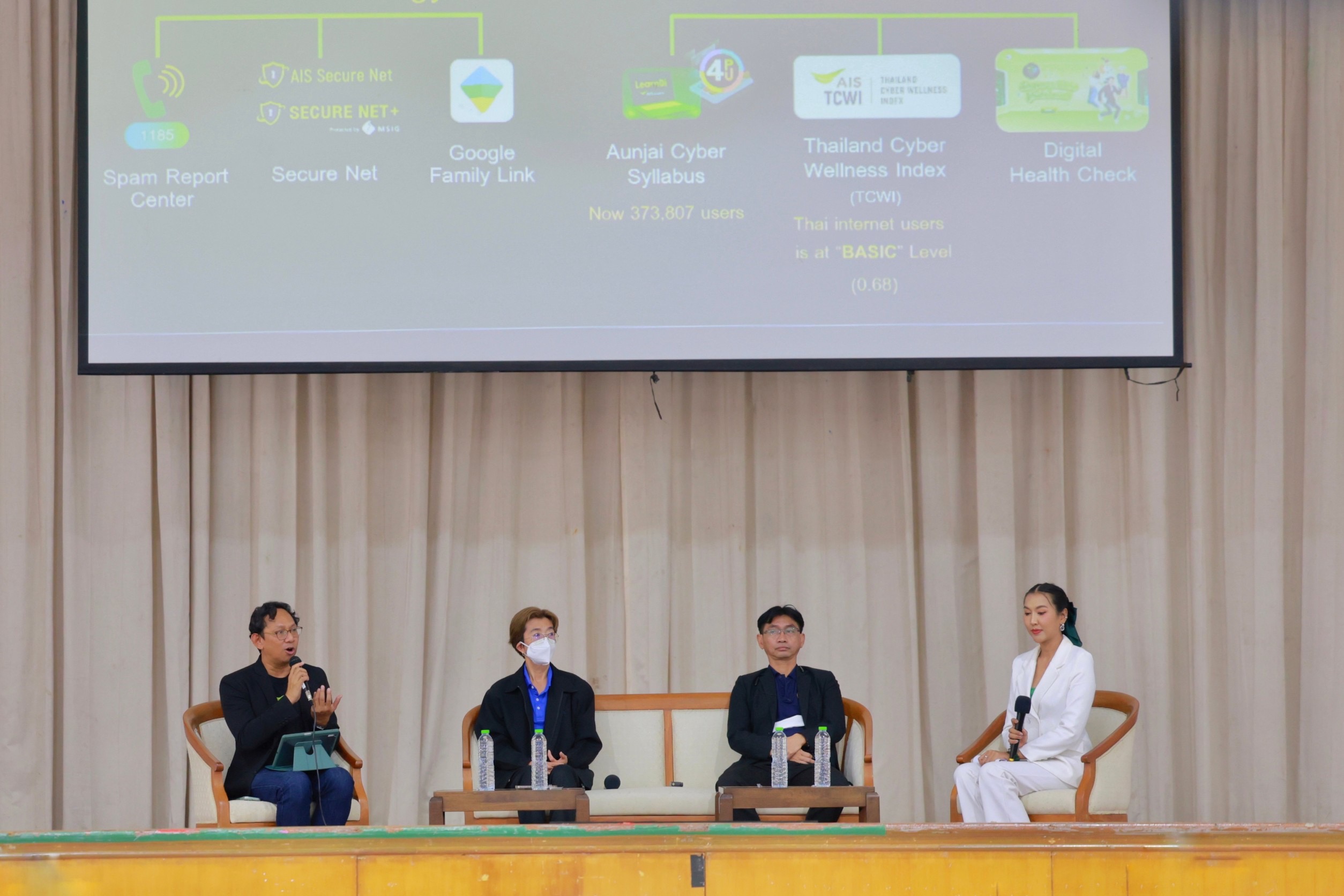 ในส่วนของ AIS คุณสุริยา เอี่ยมเพ็ชร์ รักษาการหัวหน้าแผนกงานปฏิบัติการด้านเทคนิค-ภาคกลาง AIS ขึ้นเสวนาในหัวข้อ “รู้ทันรอบทิศ บล็อกมิจโจรไซเบอร์” ร่วมกับหน่วยงานภาครัฐ และเอกชน ถ่ายทอดความรู้ สร้างพลเมืองดิจิทัลที่มีความรู้เท่าทันภัยไซเบอร์ พร้อมติดเกราะไม่ให้ตกเป็นเหยื่อของภัยร้ายจากมิจฉาชีพ โดย AIS ในฐานะผู้ให้บริการดิจิทัลชั้นนำของไทย มีภารกิจสร้าง สังคมดิจิทัลให้มีความปลอดภัยยิ่งขึ้น มุ่งส่งเสริมการใช้งานที่ถูกต้องปลอดภัยและเหมาะสมให้กับคนไทย ภายใต้โครงการ AIS อุ่นใจ CYBER ด้วย 2 แกนหลัก ได้แก่