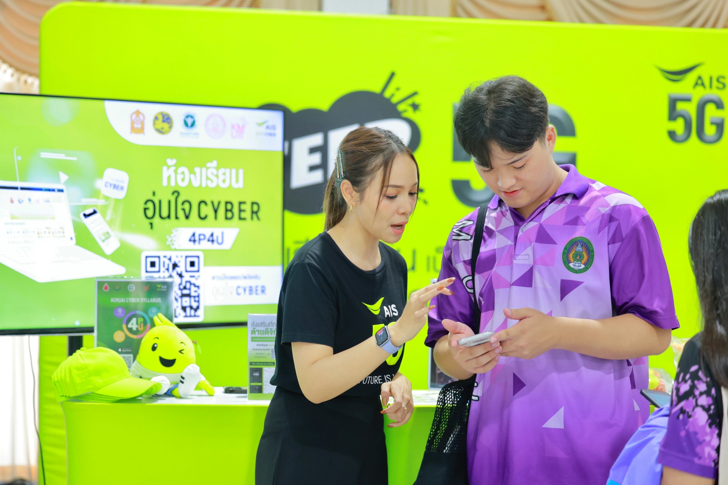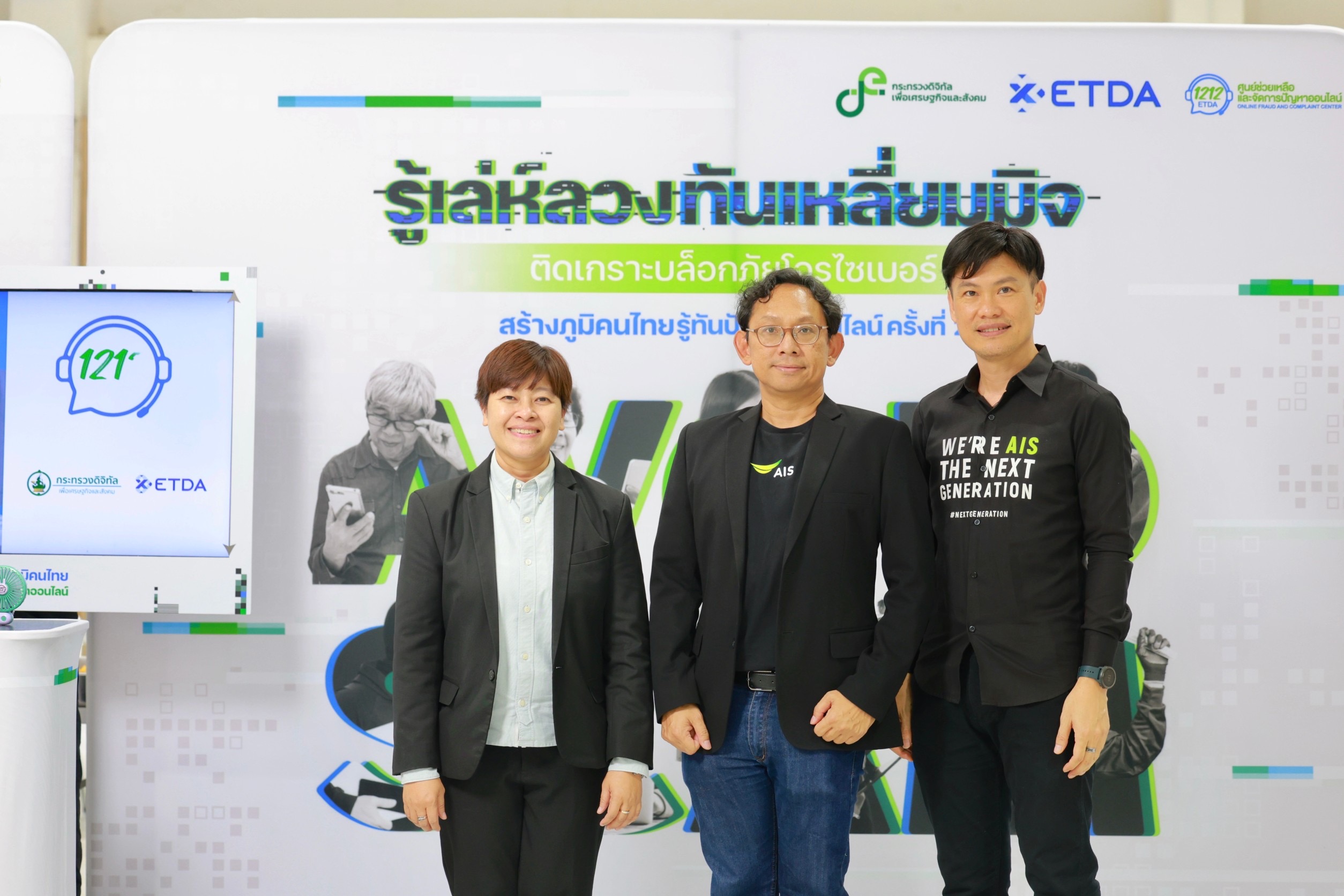 20 สิงหาคม 2567: หอประชุมรัตนพฤกษ์ มหาวิทยาลัยราชภัฏหมู่บ้านจอมบึง จังหวัดราชบุรี AIS อุ่นใจไซเบอร์ ร่วมสนับสนุน สำนักงานพัฒนาธุรกรรมทางอิเล็กทรอนิกส์ (สพธอ.) หรือ ETDA พร้อมด้วยเมเครือข่ายพันธมิตร สร้างการตระหนักรู้ เสริมภูมิคนไทยรู้ทันภัยออนไลน์ รู้เล่ห์ลวง ทันเหลี่ยมมิจ ติดเกราะบล็อกภัยโจรไซเบอร์ให้กับกลุ่มนักศึกษา