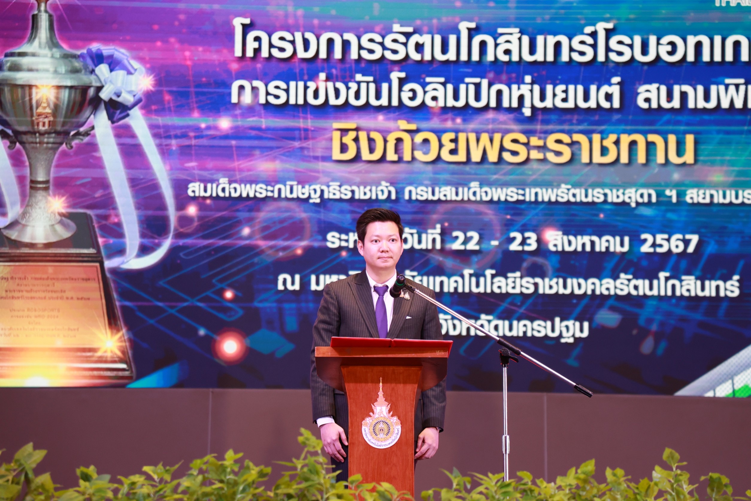 วันศุกร์ที่ 23 สิงหาคม 2567 มทร.รัตนโกสินทร์ คณะวิศวกรรมศาสตร์ ร่วมกับบริษัท แกมมาโก้ (ประเทศไทย) จำกัด เป็นเจ้าภาพจัดโครงการ “รัตนโกสินทร์โรบอทเกมส์การแข่งขัน WRO สนามพิเศษ ชิงถ้วยรางวัลพระราชทาน สมเด็จพระกนิษฐาธิราชเจ้า กรมสมเด็จพระเทพรัตนราชสุดา ฯ สยามบรมราชกุมารี” โดยได้รับเกียรติจาก นายสุทธิเกียรติ วีระกิจพานิช ที่ปรึกษารัฐมนตรีว่าการกระทรวงดิจิทัลเพื่อเศรษฐกิจและสังคม เป็นประธานในพิธีเปิดโครงการ รศ.ดร.อุดมวิทย์ ไชยสกุลเกียรติ อธิการบดี กล่าวสำนึกในพระกรุณาธิคุณ ผศ.ดร.เจษฎาพร สถานทรัพย์ คณบดีคณะวิศวกรรมศาสตร์ กล่าวรายงาน ดร.นวลวรรณ ชะอุ่ม ประธานจัดโครงการแข่งขันโอลิมปิกหุ่นยนต์ ประจำประเทศไทย กล่าวถึงความร่วมมือและวัตถุประสงค์ในการจัดการแข่งขันโอลิมปิกหุ่นยนต์ อีกทั้งมีคุณจักรริน จันทรวิสูตร กรรมการผู้จัดการ บริษัท แกมมาโก้ (ประเทศไทย) จำกัด และคุณรัดเกล้า อินทวงศ์ รองโฆษกประจำสำนักนายกรัฐมนตรี ร่วมเป็นเกียรติในพิธีเปิดโครงการ ซึ่งโครงการนี้เป็นโครงการที่ทำให้เกิดประโยชน์ต่อการเรียนการสอนทางด้านวิศวกรรมศาสตร์ เปิดโอกาสให้นักเรียน นักศึกษา ได้แสดงความรู้ความสามารถในด้านทฤษฎีและปฏิบัติ มีการระดมความคิด แลกเปลี่ยนความรู้ในการสร้างและควบคุมหุ่นยนต์อัตโนมัติ มีการวางแผนการทำงานร่วมกันเป็นหมู่คณะ ตลอดจนเป็นการเสริมสร้างความสามัคคี และเครือข่ายระหว่างสถาบันการศึกษาต่าง ๆ การแข่งขันในครั้งนี้ เป็นการแข่งขันสร้างและควบคุมหุ่นยนต์อัตโนมัติ โดยแบ่งการแข่งขันออกเป็น 3 ประเภท ได้แก่ ประเภท Robosports ประเภท Future Engineers และ Future Innovators นักเรียนหรือนักศึกษาที่มีอายุระหว่าง 11 ถึง 19 ปี จำนวนรวม 57 ทีม ทุกรายการ โดยการแข่งขันจัดขึ้นเป็นระยะเวลา 2 วัน ระหว่างวันที่ 22 – 23 สิงหาคม 2567 ผู้ที่ชนะเลิศการแข่งขันทั้งสองประเภท จะได้รับถ้วยรางวัลพระราชทาน สมเด็จพระกนิษฐาธิราชเจ้า กรมสมเด็จพระเทพรัตนราชสุดาฯ สยามบรมราชกุมารี ณ หอประชุมบัวสวรรค์ มทร.รัตนโกสินทร์ ศาลายา