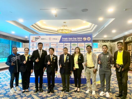 ที่ ห้องบุหงา ชั้น 3 โรงแรมโกลเด้นทิวลิป ซอฟเฟอรินจ์ กรุงเทพฯ พลเอกเดชา เหมกระศรี ประธานสหพันธ์จักรยานแห่งอาเซียน และนายกสมาคมกีฬาจักรยานแห่งประเทศไทย พร้อมด้วย นายณัฐภัทร สุวรรณประทีป ผู้ว่าราชการจังหวัดสุพรรณบุรี ร่วมแถลงข่าวการแข่งขันจักรยานประเภทลู่นานาชาติ “แทร็ค เอเชีย คัพ 2024” ระหว่างวันที่ 28-30 สิงหาคม 2567 โดยมี นายวิษณุ ไล่ชะพิษ อธิการบดีมหาวิทยาลัยการกีฬาแห่งชาติ นางสมจิต บุญคงเสนผู้อำนวยการโรงเรียนกีฬาจังหวัดสุพรรณบุรี และผู้สนับสนุน ร่วมพิธีด้วย