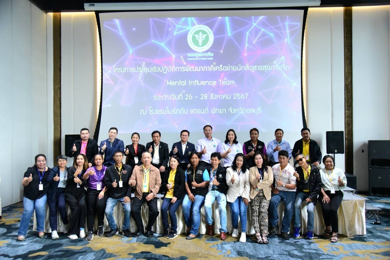 วันที่ 27 สิงหาคม 2567 เวลา 15.00 น. สำนักความรอบรู้สุขภาพจิต กรมสุขภาพจิต ประชุมเชิงปฏิบัติการพัฒนาภาคีเครือข่ายนักสื่อสารสุขภาพจิต Mental Influence Team เขตสุขภาพที่ 5 และ 6 ได้รับเกียรติจาก นายแพทย์จุมภฏ พรมสีดา รองอธิบดีกรมสุขภาพจิต เป็นประธานเปิดโครงการประชุมเชิงปฏิบัติการพัฒนาภาคีเครือข่ายนักสื่อสารสุขภาพจิต : Mental Influence Team เขตสุขภาพที่ 5 และเขตสุภาพที่ 6 โดยมีนายแพทย์บุรินทร์ สุรอรุณสัมฤทธิ์ ผู้อำนวยการสำนักความรอบรู้สุขภาพจิต เป็นผู้กล่าวรายงาน พร้อมด้วยนายแพทย์พรรธนภ ตัณฑ์ศุภศิริ ผู้อำนวยการโรงพยาบาลจิตเวชสระแก้วราชนครินทร์ และนางภัทรานิษฐ์ ทองตันไตรย์ ผู้อำนวยการศูนย์สุขภาพจิตที่ 6 เข้าร่วม ณ โรงแรมไบร์ทตัน แกรนด์ พัทยา จังหวัดชลบุรี มีศูนย์สุขภาพจิตที่ 5,6,7,8,9 และ 13 เข้าร่วม ซึ่งจัดขึ้นระหว่างวันที่ 26-28 สิงหาคม พ.ศ.2567