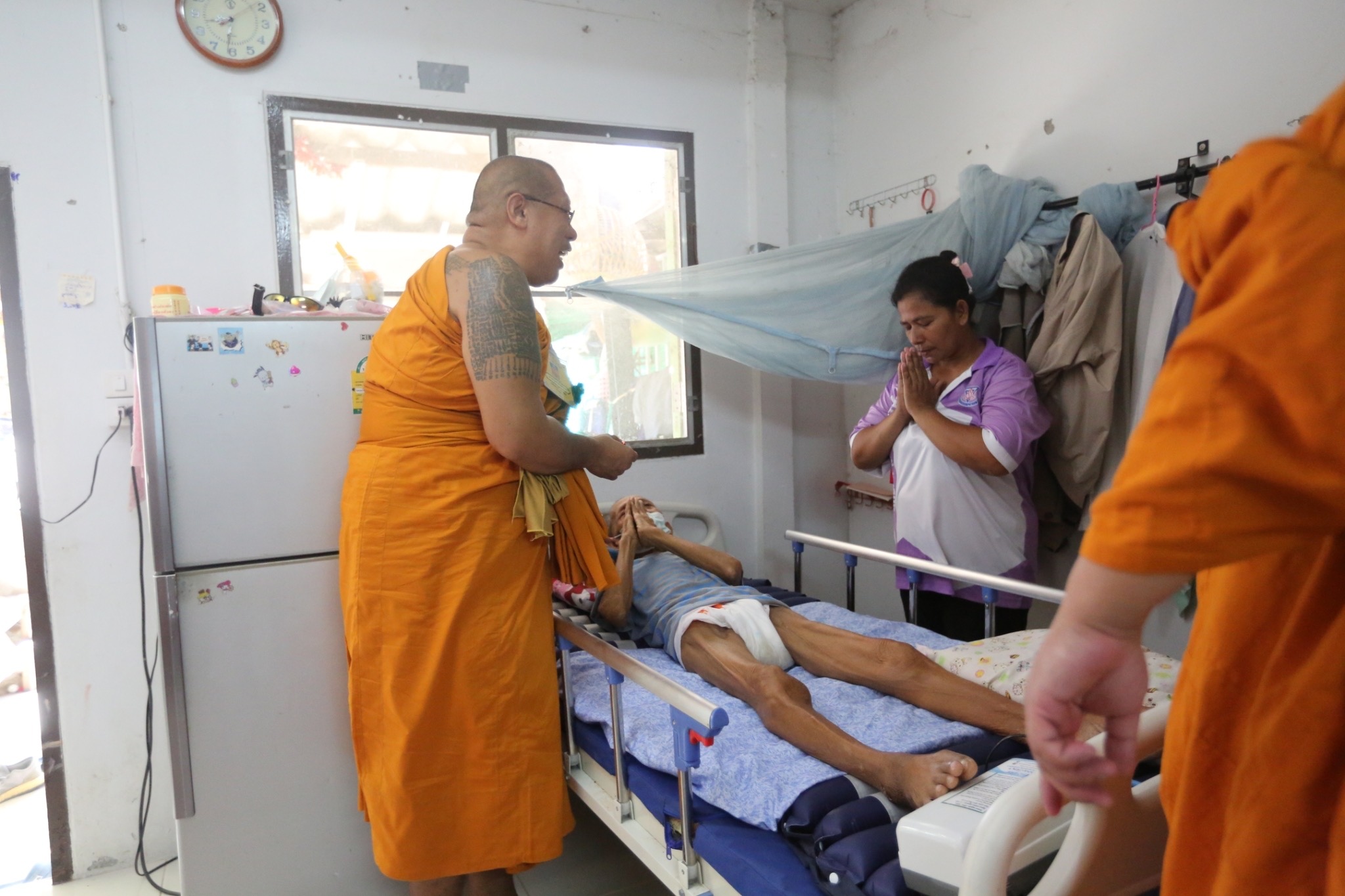 หลวงพี่น้ำฝน เจ้าอาวาสวัดไผ่ล้อม ได้สอบถามข้อมูลเพิ่มเติมจากบุตรสาว ทราบว่า นายภัคตร์ บิดา เพิ่งมีอาการป่วยด้วยโรคเก๊าและอ่อนแรง โดยมีการหายใจไม่สะดวก และเข้ารับการรักษาตัวที่โรงพยาบาลนครปฐม ก่อนจะได้รับการอนุญาตให้กลับบ้านมาดูแลต่อด้วยการกายภาพและให้รับประทานยาที่บ้านพัก โดยมีบุตรสาวคอยเป็นผู้ดูแลอย่างใกล้ชิด จากนั้นได้นำเตียงสำหรับผู้ป่วยติดตั้งภายในบ้าน ก่อนจะมอบข้าวสารและน้ำดื่ม พร้อมกับมอบเงินเป็นทุนสำหรับการซื้ออุปกรณ์ที่จำเป็นในการพักฟื้นร่างกาย