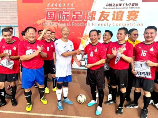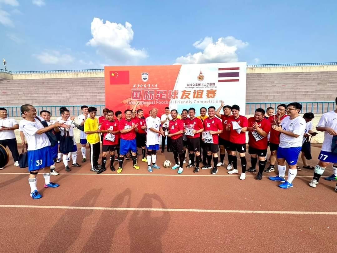 วันเสาร์ที่ 31 สิงหาคม 2567 มหาวิทยาลัยเทคโนโลยีราชมงคลทั้ง 9 แห่ง นำโดย รศ.ดร.อุดมวิทย์ ไชยสกุลเกียรติ อธิการบดี ในนามประธานอธิการบดีมหาวิทยาลัยเทคโนโลยีราชมงคล (ทปอ.มทร.) ร่วมกับ Xi’an International Studies University จัดการแข่งขันฟุตบอลกระชับมิตร เป็นส่วนหนึ่งในโครงการสัมมนาเชิงปฏิบัติการเพื่อพัฒนาผู้นำนักศึกษาของมหาวิทยาลัยราชมงคลทั้ง 9 แห่ง เพื่อเชื่อมสัมพันธไมตรีต่อกัน
