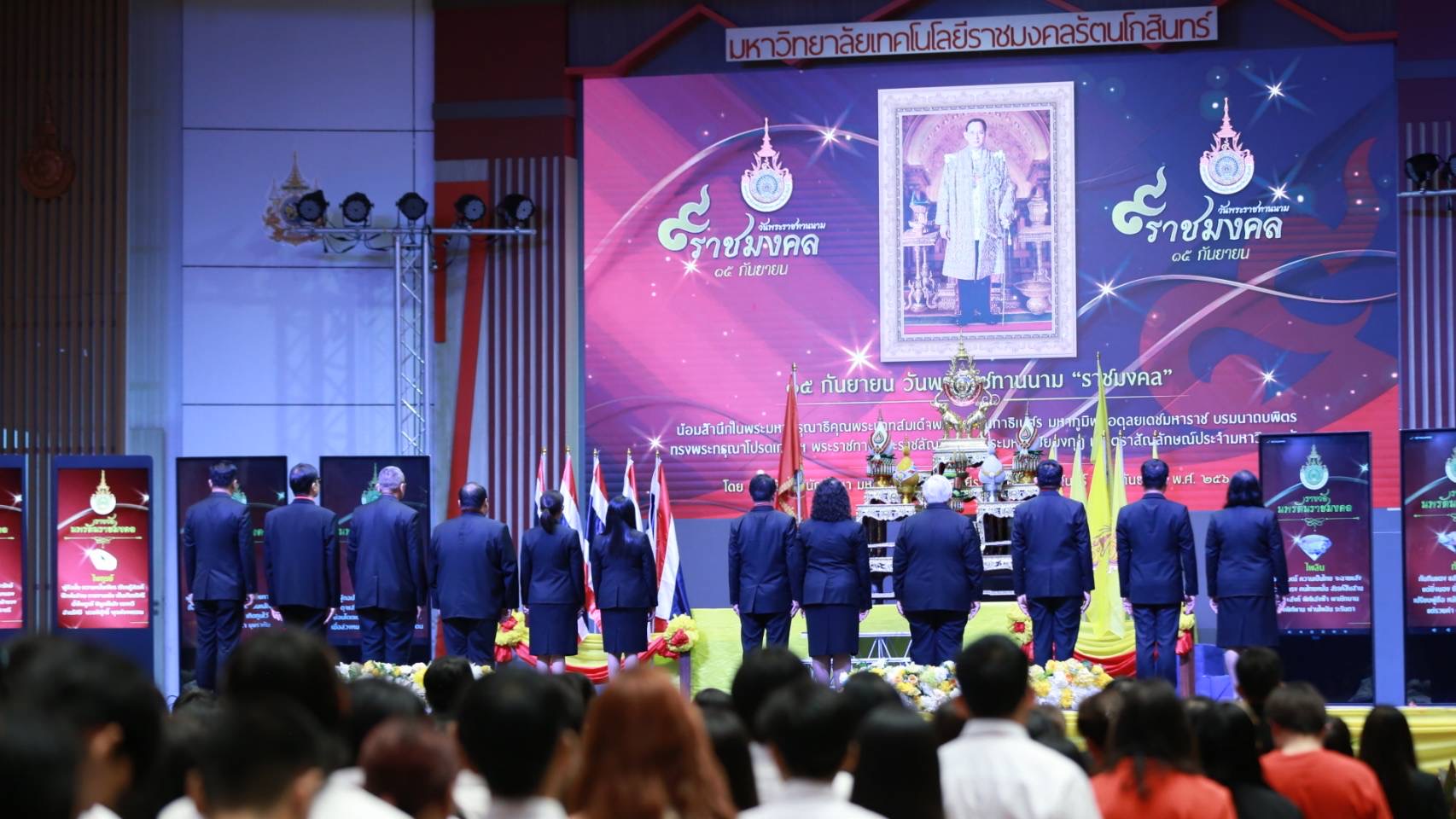 วันศุกร์ที่ 13 กันยายน 2567 มทร.รัตนโกสินทร์ นำโดย รศ.ดร.อุดมวิทย์ ไชยสกุลเกียรติ อธิการบดี เป็นประธานในโครงการวันพระราชทานนาม “ราชมงคล” 15 กันยายน เพื่อน้อมรำลึกในพระมหากรุณาธิคุณของ พระบาทสมเด็จพระบรมชนกาธิเบศร มหาภูมิพลอดุลยเดชมหาราช บรมนาถบพิตร ทรงพระกรุณาโปรดเกล้าฯ พระราชทานนามให้มหาวิทยาลัยเทคโนโลยีและอาชีวศึกษาว่า สถาบันเทคโนโลยีราชมงคล ซึ่งหมายความว่า สถาบันเทคโนโลยีอันเป็นมิ่งมงคลแห่งพระราชา เมื่อวันที่ 15 กันยายน 2531 และได้ยกฐานะเป็นมหาวิทยาลัยเทคโนโลยีราชมงคลทั้ง 9 แห่ง เมื่อวันที่ 18 มกราคม 2548 พระราชทานพระราชลัญจกร และมหาพิชัยมงกุฎ เป็นตราสัญลักษณ์ ประจำมหาวิทยาลัยเทคโนโลยีราชมงคล ซึ่งโครงการนี้เริ่มด้วยขบวนเกียรติยศอัญเชิญตราสัญลักษณ์ประจำมหาวิทยาลัยพระราชทาน พิธีถวายราชสดุดีสำนึกในพระมหากรุณาธิคุณในพระบาทสมเด็จพระบรมชนกาธิเบศร มหาภูมิพลอดุลยเดชมหาราช บรมนาถบพิตร และพิธีมอบโล่รางวัล “นพรัตนราชมงคล” 9 บุคคลดีเด่น ครั้งที่ 5 ประจำปี 2567 ให้แก่บุคคลที่เป็นคนดี มีคุณธรรม จริยธรรม เป็นผู้เสียสละ สร้างคุณประโยชน์ให้แก่สังคม ภายใต้คำสอนศาสตร์พระราชา ของในหลวงรัชกาลที่ 9 จำนวน 9 ท่าน ได้แก่ 1.ดร.นพดล พริ้งสกุล 2.ผศ.ชัยศักดิ์ คล้ายแดง 3.นางสุภาภรณ์ สายประสิทธิ์ 4.นางพุทธรักษา สุวรรณรัตน์ 5.นายรัศมิ์ศิลป์ ไกรเพิ่ม 6.นายไพวรรณ ดวงแข 7.นายพิชิต สังฆรังษี 8.ดร.อุษณีย์ ด่านกลาง และ9.นายกิตติ ศิริตื้นลี ณ หอประชุมบัวสวรค์ มทร.รัตนโกสินทร์ ศาลายา