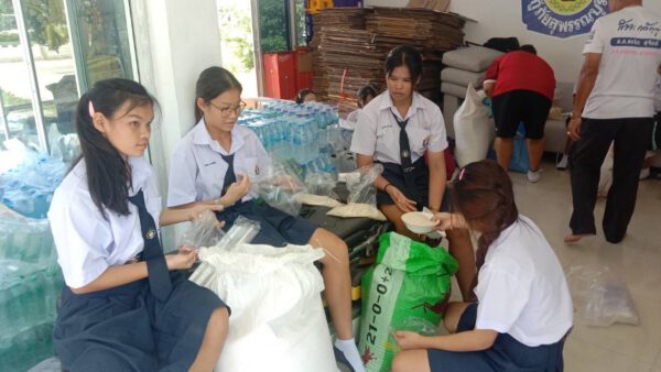 ไปช่วยกันกรอกถุงยังชีพและยกน้ำใส่รถบรรทุก ธารน้ำใจจากสุพรรณบุรีสู่พี่น้องชาวอีสาน เพื่อนำไปแจกจ่ายให้ประชาชนที่น้ำท่วมภาคอีสาน