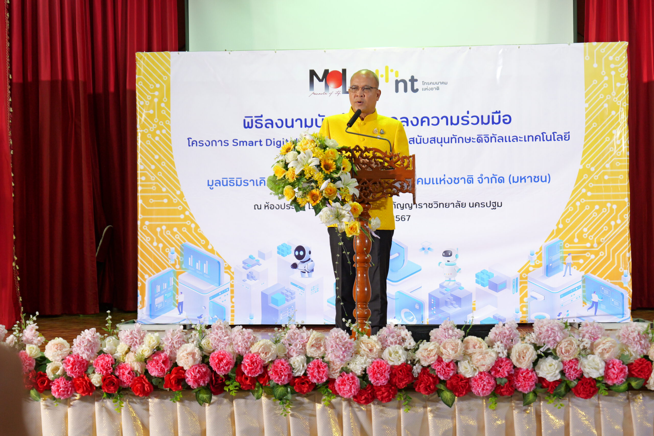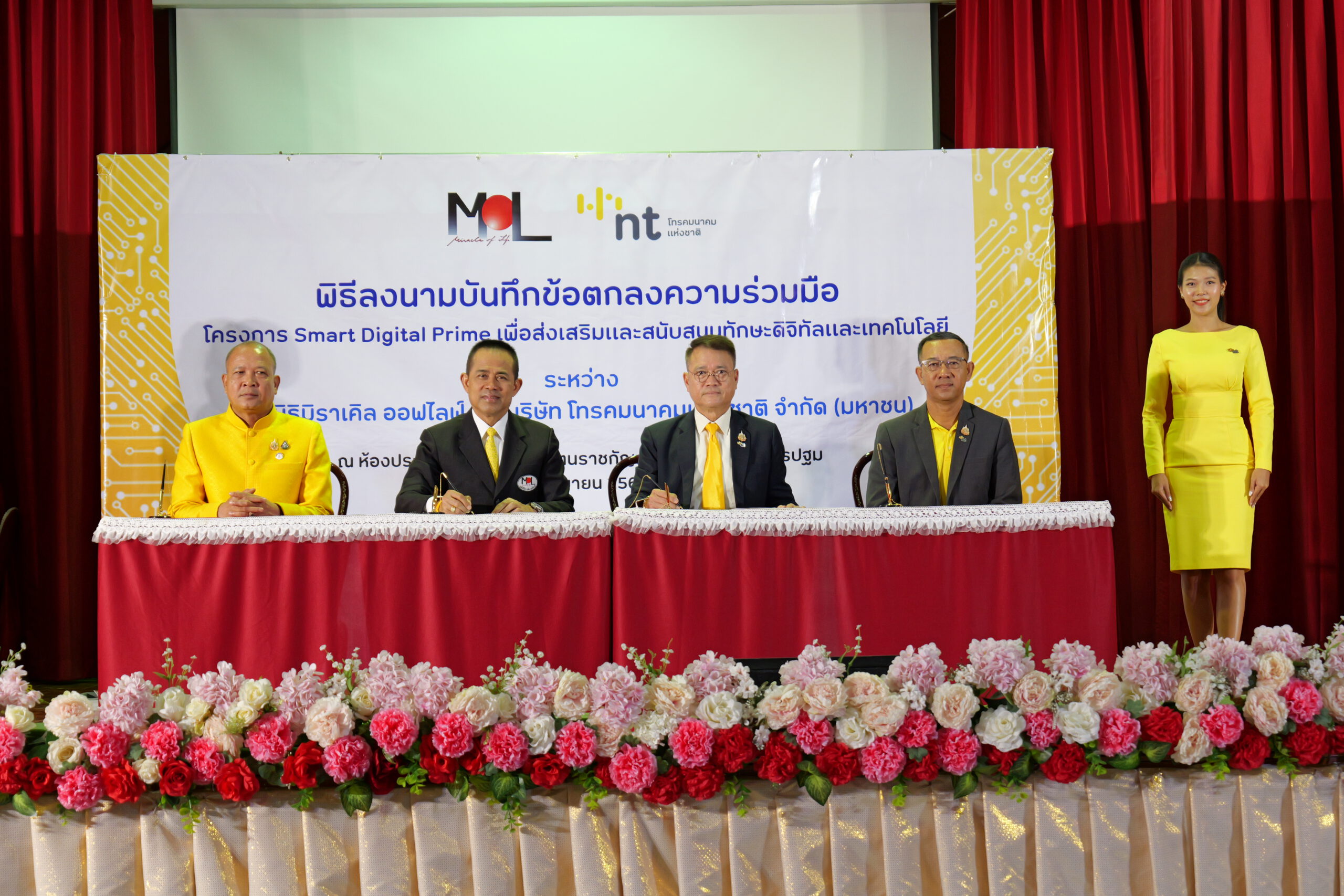 วันที่ 17 กันยายน 2567 มูลนิธิมิราเคิล ออฟไลฟ์ ร่วมกับ บริษัท โทรคมนาคมแห่งชาติ จำกัด(มหาชน) หรือ NT จัดพิธีลงนามบันทึกข้อตกลงความร่วมมือ (MOU) โครงการ Smart Digital Prime เพื่อส่งเสริมและสนับสนุนทักษะดิจิทัลและเทคโนโลยี โดยมี ร้อยตำรวจโท ดร.มนัส โนนุช ประธานกรรมการ มูลนิธิมิราเคิล ออฟไลฟ์ และ นายพัฒนา ณ สงขลา รองกรรมการผู้จัดการใหญ่สายงานขายและปฏิบัติการลูกค้า 3 บริษัท โทรคมนาคมแห่งชาติ จำกัด (มหาชน) ร่วมลงนามฯ ซึ่งบันทึกข้อตกลงดังกล่าวมีขึ้นเพื่อพัฒนาทักษะความรู้ในด้านการสอนดิจิทัลและเทคโนโลยี ส่งเสริมกิจกรรมสร้างสุขภาวะด้วยอัจฉริยะเทคโนโลยีแก่ครูผู้สอน ตลอดจนบุคลากรทางการศึกษาให้ได้มาตรฐาน ซึ่งสอดคล้องกับนโยบายของรัฐบาลในการพัฒนาทักษะด้านดิจิทัลและเทคโนโลยีในประเทศไทย รวมทั้งเพื่อให้นักเรียนและผู้ที่สนใจได้มีการพัฒนาทักษะดิจิทัลและเทคโนโลยีด้านเซมิคอนดักเตอร์ ด้วยการฝึกอบรมและปฏิบัติจริง พร้อมร่วมมือผลักดันโครงการ Smart Digital Prime เพื่อถ่ายทอดองค์ความรู้ให้กับครู นักเรียน บุคลากรทางการศึกษา และผู้ที่สนใจ ให้มีประสิทธิภาพสูงสุด