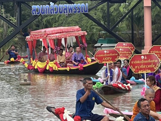 ที่ ศูนย์อนุรักษ์พันธุ์กล้วยสุพรรณบุรี วัดป่าเลไลยก์วรวิหาร นายณัฐภัทร สุวรรณประทีป ผู้ว่าราชการจังหวัดสุพรรณบุรี พร้อมด้วยนางนภัสสร สุวรรณประทีป นายกเหล่ากาชาดจังหวัด รองผู้ว่าราชการจังหวัด หัวหน้าส่วนราชการ ตลอดจนประชาชนและนักท่องเที่ยว จำนวนมาก พาบุตรหลานแต่งกายด้วยชุดผ้าไทย