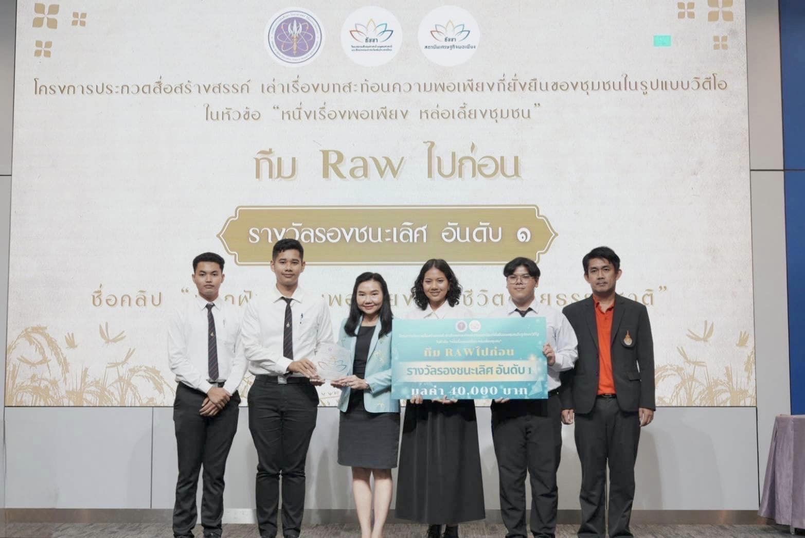 มทร.รัตนโกสินทร์ ขอแสดงความยินดีกับ ทีม Rawไปก่อน ได้แก่ ผศ.คมสันต์ ทับชัย อาจารย์ที่ปรึกษา นายคุปตพงศ์ พรหมเมศร หัวหน้าทีม นายชนกพล เพ็งทอง นายวรากร จินตวร และนางสาวกาญจนาวดี ตุดา ที่ได้รับรางวัลรองชนะเลิศอันดับ 1 จากการประกวดสื่อ โครงการประกวดสื่อสร้างสรรค์ เล่าเรื่องบทสะท้อนความพอเพียงที่ยั่งยืนของชุมชน ในรูปแบบวิดีโอในหัวข้อ “หนึ่งเรื่องพอเพียง หล่อเลี้ยงชุมชน” ชื่อคลิป “ปลูกฝังความพอเพียง คืนชีวิตด้วยธรรมชาติ” ซึ่งจะเข้าร่วมงานพิธีมอบรางวัลโครงการประกวดสื่อสร้างสรรค์ฯ ในวันพุธที่ 25 กันยายน 2567 ณ ห้องแถลงข่าว ชั้น 1 อาคารพระจอมเกล้า กระทรวงการอุดมศึกษา วิทยาศาสตร์ วิจัยและนวัตกรรม (ถนนโยธี)