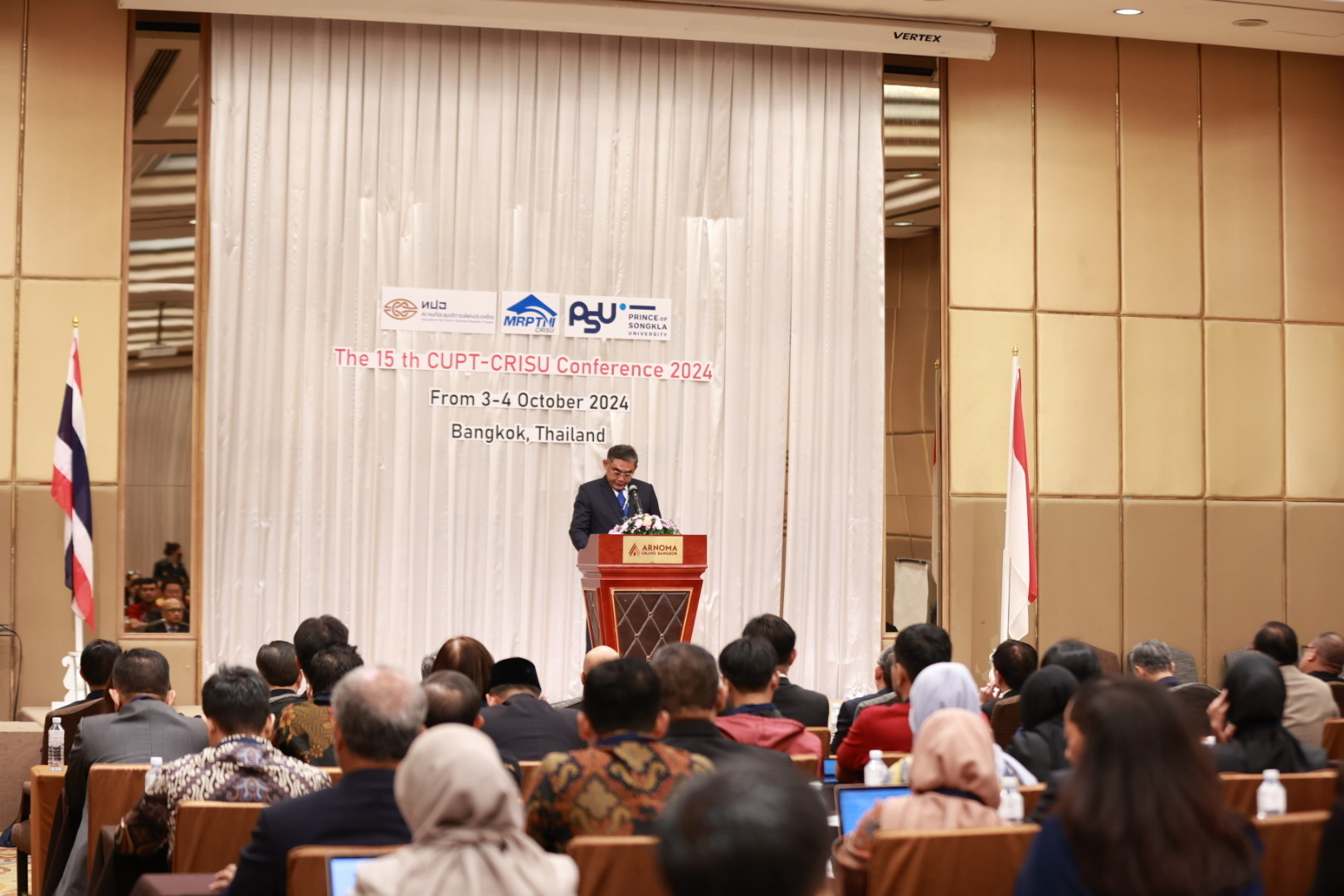 วันพฤหัสบดีที่ 3 ตุลาคม 2567 มทร.รัตนโกสินทร์ นำโดย รศ.ดร.อุดมวิทย์ ไชยสกุลเกียรติ อธิการบดี ในนามประธานอธิการบดีมหาวิทยาลัยเทคโนโลยีราชมงคล (ทปอ.มทร.) พร้อมด้วยรศ.ดร.อาคีรา ราชเวียง รองอธิการบดี ผศ.ดร.นพนภา จุลโลบล รองอธิการบดี และดร.ณัฐพงศ์ โชติกเสถียร ผู้อำนวยการวิทยาลัยผู้ประกอบการสร้างสรรค์นานาชาติรัตนโกสินทร์ เข้าร่วมการประชุมความร่วมมือไทยและอินโดนีเซีย ครั้งที่ 15 (The 15th CUPT-CRISU Conference 2024) โดยมี ศ.ดร. ศุภชัย ปทุมนากุล ปลัดกระทรวง อว. เป็นประธานในการประชุม ณ โรงแรมอโนมา แกรมด์ กรุงเทพฯ