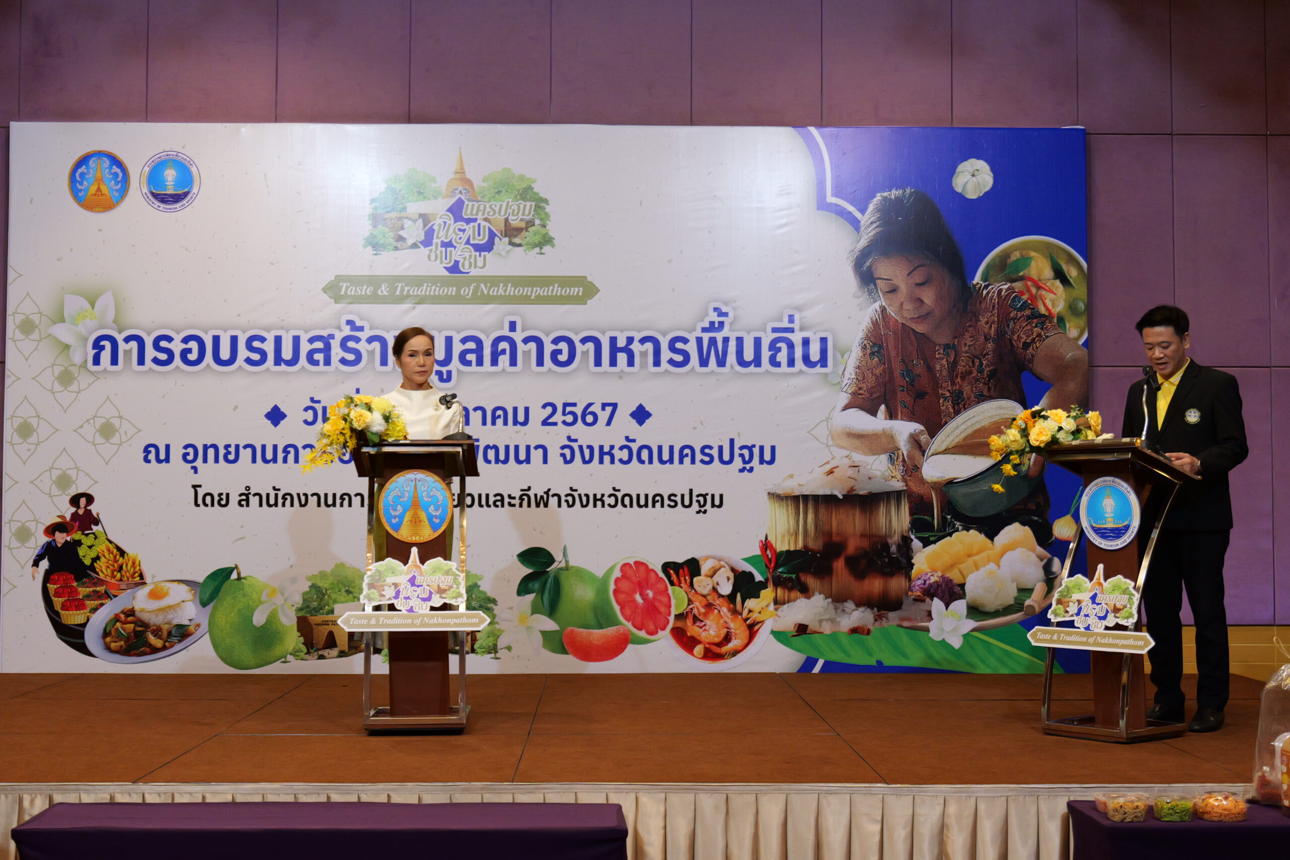 การอบรมสร้างมูลค่าอาหารพื้นถิ่น ภายใต้โครงการส่งเสริมการการท่องเที่ยวเชิงอาหารและวัฒนธรรมการท่องเที่ยวที่หลากหลาย (Smart Tourism) จังหวัดนครปฐม ในครั้งนี้