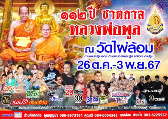 พระครูปลัดสิทธิวัฒน์ หลวงพี่น้ำฝน เจ้าอาวาสวัดไผ่ล้อม ได้นำคะกรรมการวัดไผ่ล้อม ตำบลพระปฐมเจดีย์ อำเภอเมือง จังหวัดนครปฐมจัดงาน ” 112 ปีชาตกาล หลวงพ่อพูล” ในช่วงระหว่างวันที่ 26 ตุลาคม ถึงวันที่ 3 พฤศจิกายน พ.ศ.2456 นี้ โดยได้มีการจัดกิจกรรมที่หลากหลายเพื่อรำลึกพระคุณของพระเดชพระคุณหลวงพ่อพูล อัตตรักโข อดีตเจ้าอาวาสวัดไผ่ล้อม รวมถึงการจัดงานมหรสพที่ยิ่งใหญ่ ซึ่งเป็นปีที่ 2 ติดต่อกันหลังจากที่ปีที่แล้วประสบความสำเร็จอย่างล้นหลาม