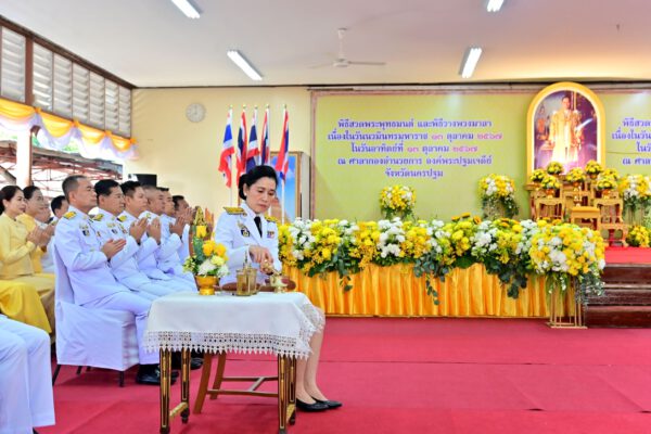 วันที่ 13 ตุลาคม 2567 เวลา 07.30 น. ที่ศาลากองอำนวยการ องค์พระปฐมเจดีย์ อำเภอเมือง จังหวัดนครปฐม นางสาวอโรชา นันทมนตรี รองผู้ว่าราชการจังหวัดนครปฐม รักษาราชการแทนผู้ว่าราชการจังหวัดนครปฐม เป็นประธานพิธีสวดพระพุทธมนต์ เนื่องในวันนวมินทรมหาราช ประจำปี 2567 โดยมีรองผู้ว่าราชการจังหวัด หัวหน้าส่วนราชการ รองนายกเหล่ากาชาดจังหวัด ข้าราชการ ทหาร ตำรวจ องค์กรภาคเอกชน และประชาชน ร่วมพิธีในครั้งนี้