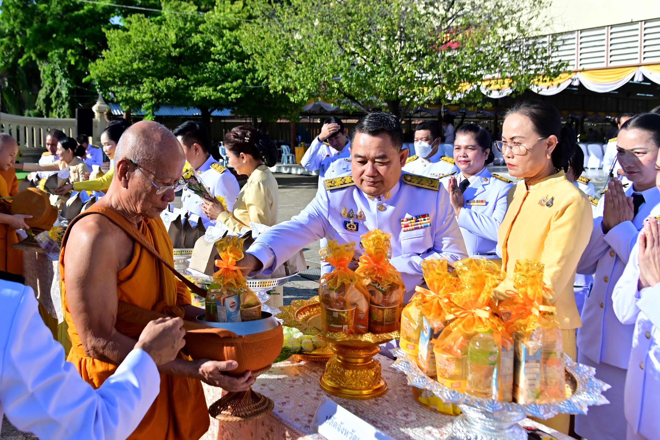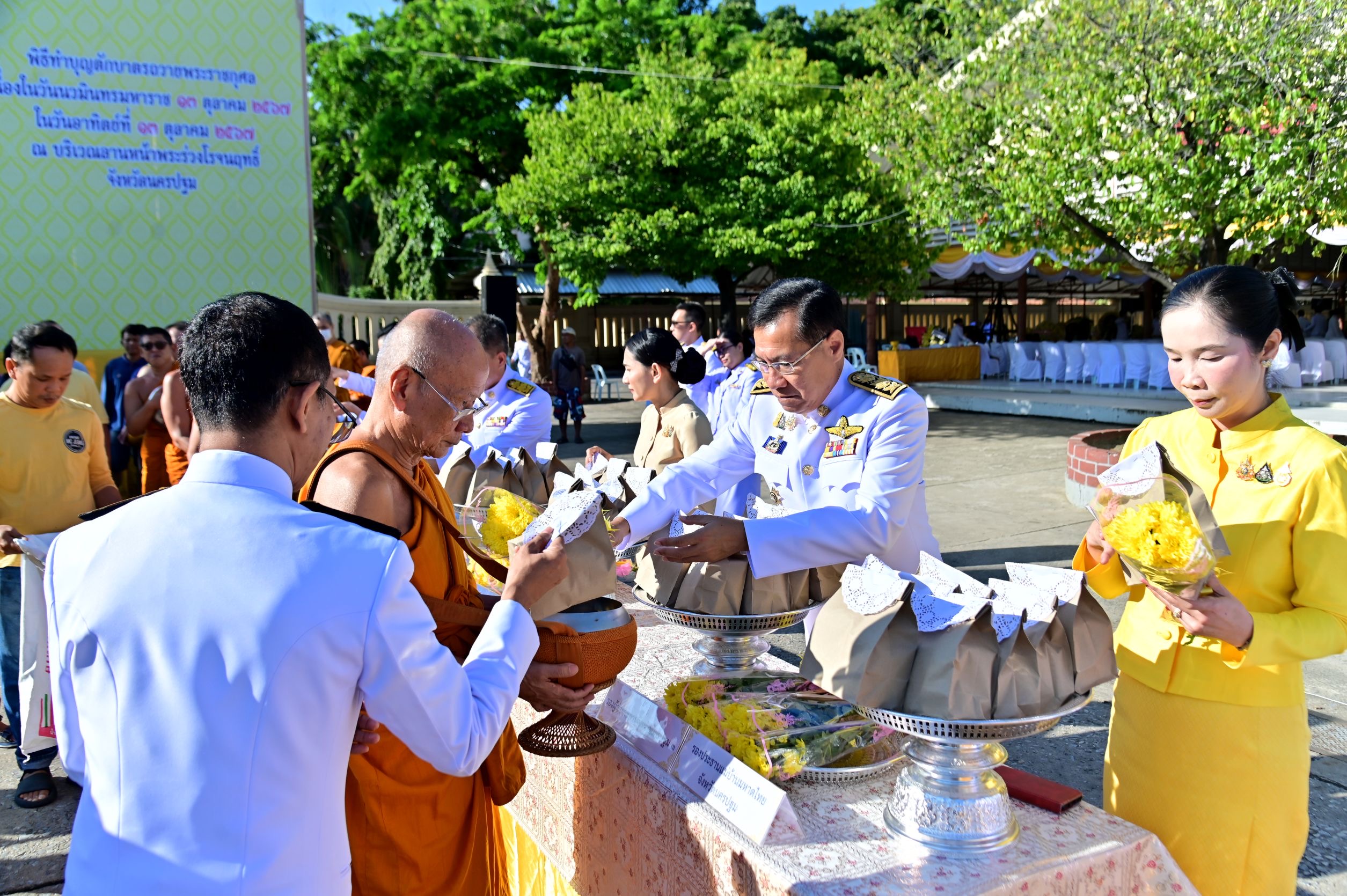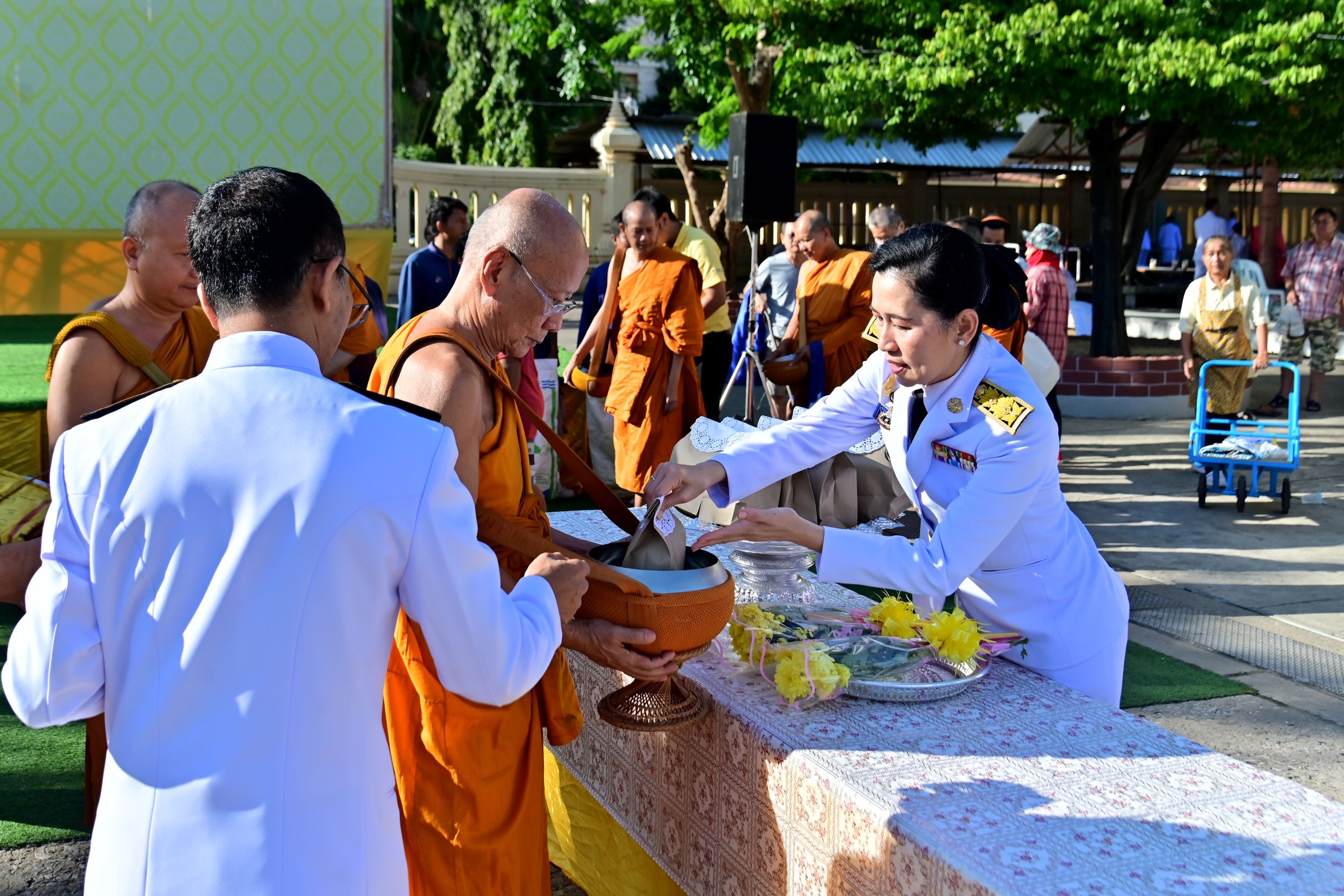 จากนั้น รองผู้ว่าราชการจังหวัดนครปฐม นำผู้เข้าร่วมพิธี ร่วมทำบุญตักบาตร ข้าวสาร อาหารแห้ง ถวายแด่พระสงฆ์ 89 รูป ณ บริเวณลานหน้าพระร่วงโรจนฤทธิ์ องค์พระปฐมเจดีย์ โดยพระเทพมหาเจติยาจารย์ ที่ปรึกษาเจ้าคณะภาค 14 วัดพระปฐมเจดีย์ราชวรมหาวิหาร นำพระสงฆ์รับบิณฑบาต เพื่อถวายพระราชกุศลแด่พระบาทสมเด็จพระบรมชนกาธิเบศร มหาภูมิพลอดุลยเดชมหาราช บรมนาถบพิตร อีกเพื่อแสดงความจงรักภักดีและน้อมรำลึกในพระมหากรุณาธิคุณ ตลอดระยะเวลากว่า 70 ปี แห่งรัชสมัยของพระองค์ ทรงทุ่มเทกำลังพระวรกายและกำลังกำลังพระสติปัญญา ปฏิบัติพระราชกรนียกิจนานัปการ เพื่อประโยชน์สุขแห่งปวงพสกนิกร ก่อให้เกิดประโยชน์อย่างอเนกอนันต์แก่ประเทศชาติ อย่างหาที่สุดมิได้
