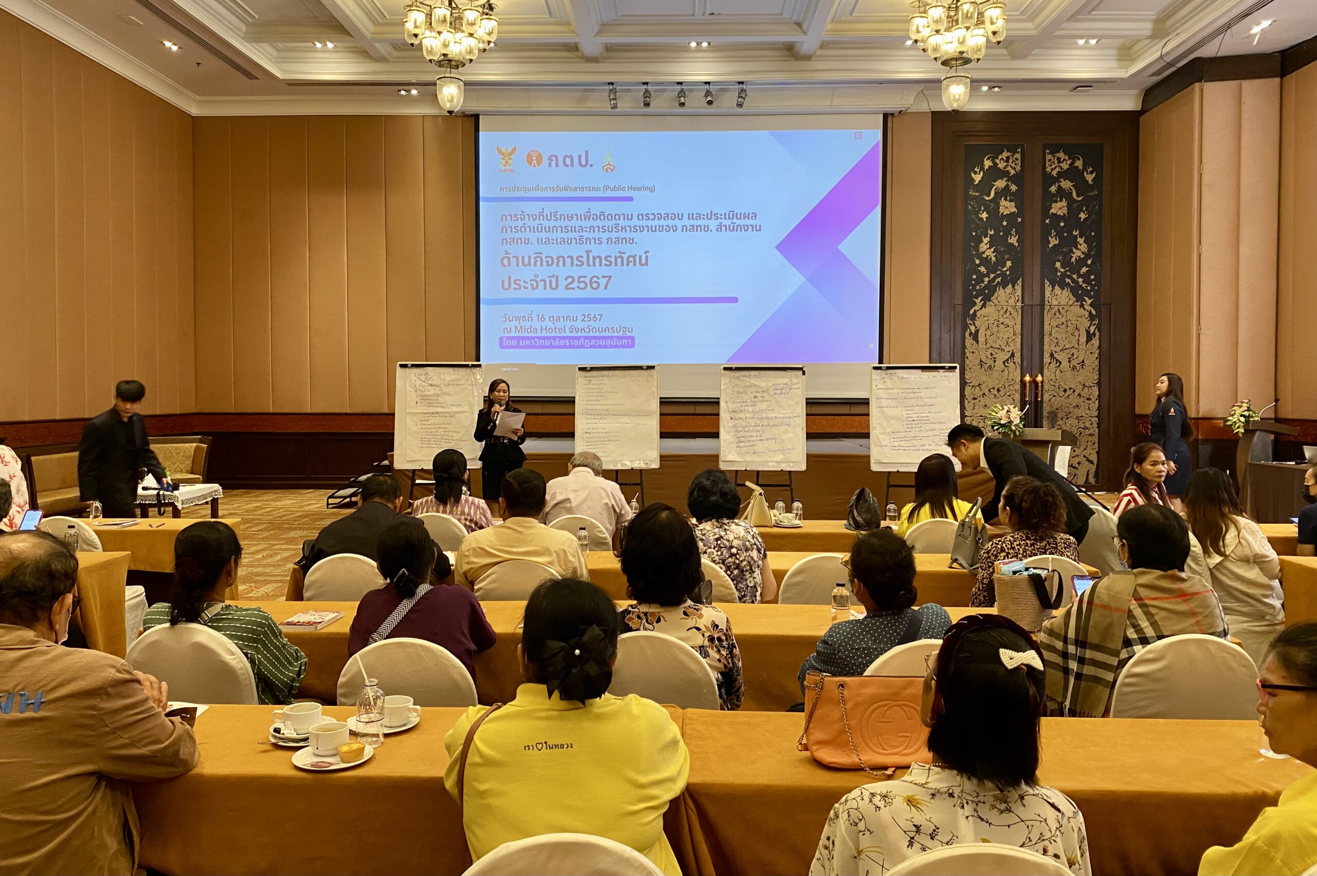วันที่ 16 ตุลาคม พ.ศ.2567 ณ ห้องประชุม ทวารวดี ๑ ชั้น ๒ โรงแรมไมด้า แกรนด์ ทวารวดี นครปฐม คณะกรรมการติดตามและประเมินผลการปฏิบัติงาน (กตป.) จัดการประชุมเพื่อรับฟังความคิดเห็นสาธารณะ ( Public Hearing) ครั้งที่ ๑ จ้างที่ปรึกษาเพื่อติดตาม ตรวจสอบ และประเมินผลการดำเนินการและการบริหารงานของ กสทช. โดยได้รับเกียรติจาก ดร.จินตนันท์ ชญาต์ร ศุภมิตร กรรมการติดตามและประเมินผลการปฏิบัติงาน (กตป.) ด้านกิจการโทรทัศน์ เป็นประธานกล่าวเปิด รองศาสตราจารย์ ดร.สุดาวรรณ สมใจ หัวหน้าโครงการ กล่าว รายงานความเป็นมาและวัตถุประสงค์การจัดการประชุม