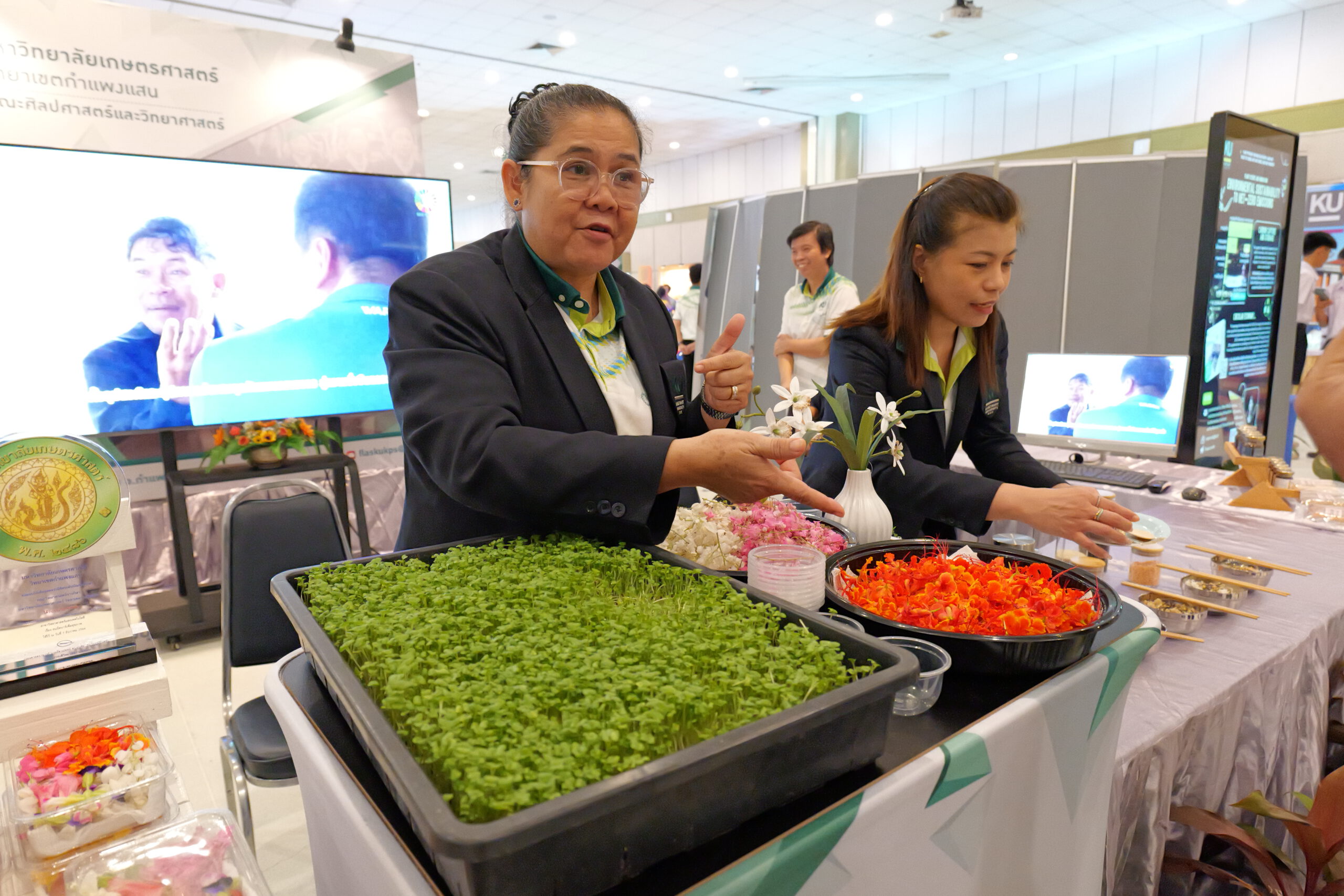 ด้านวิศวกรรมศาสตร์ เครื่องอัดกระถางปลูกแคคตัสรักษ์โลก เครื่องวิเคราะห์รสชาติเนื้อทุเรียนแบบไม่ทำลายเนื้อ “ทุเรียน ตามสั่งดั่งใจ” นิทรรศการกล้วยไม้และไม้ดอกไม้ประดับ พบกับซุ้มจัดแสดงกล้วยไม้และไม้ประดับขนาดใหญ่ การอบรมให้ความรู้ทางด้านการปลูกเลี้ยงไม้ประดับ กล้วยไม้และต้นกระบองเพชร