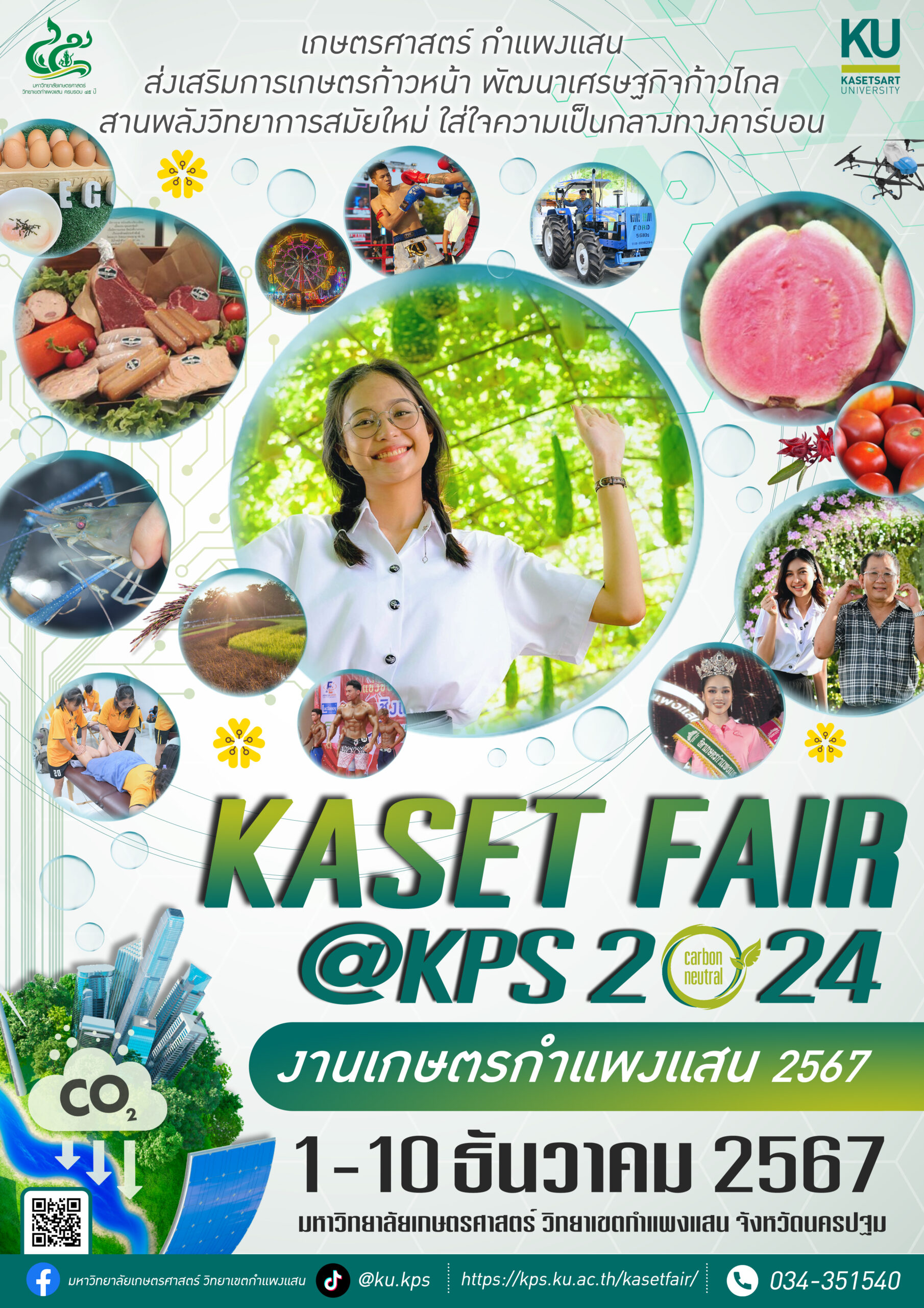 ผู้สนใจสามารถติดตามข้อมูลการจัดกิจกรรมและกำหนดการต่างๆเพิ่มเติมได้ที่ เว็บไซต์งานเกษตร กำแพงแสน ประจำปี 2567 https://kps.ku.ac.th/kasetfair/ Facebook : ku.kps.official และ TikTok: @ku.kps หมายเลขโทรศัพท์ 034-351540