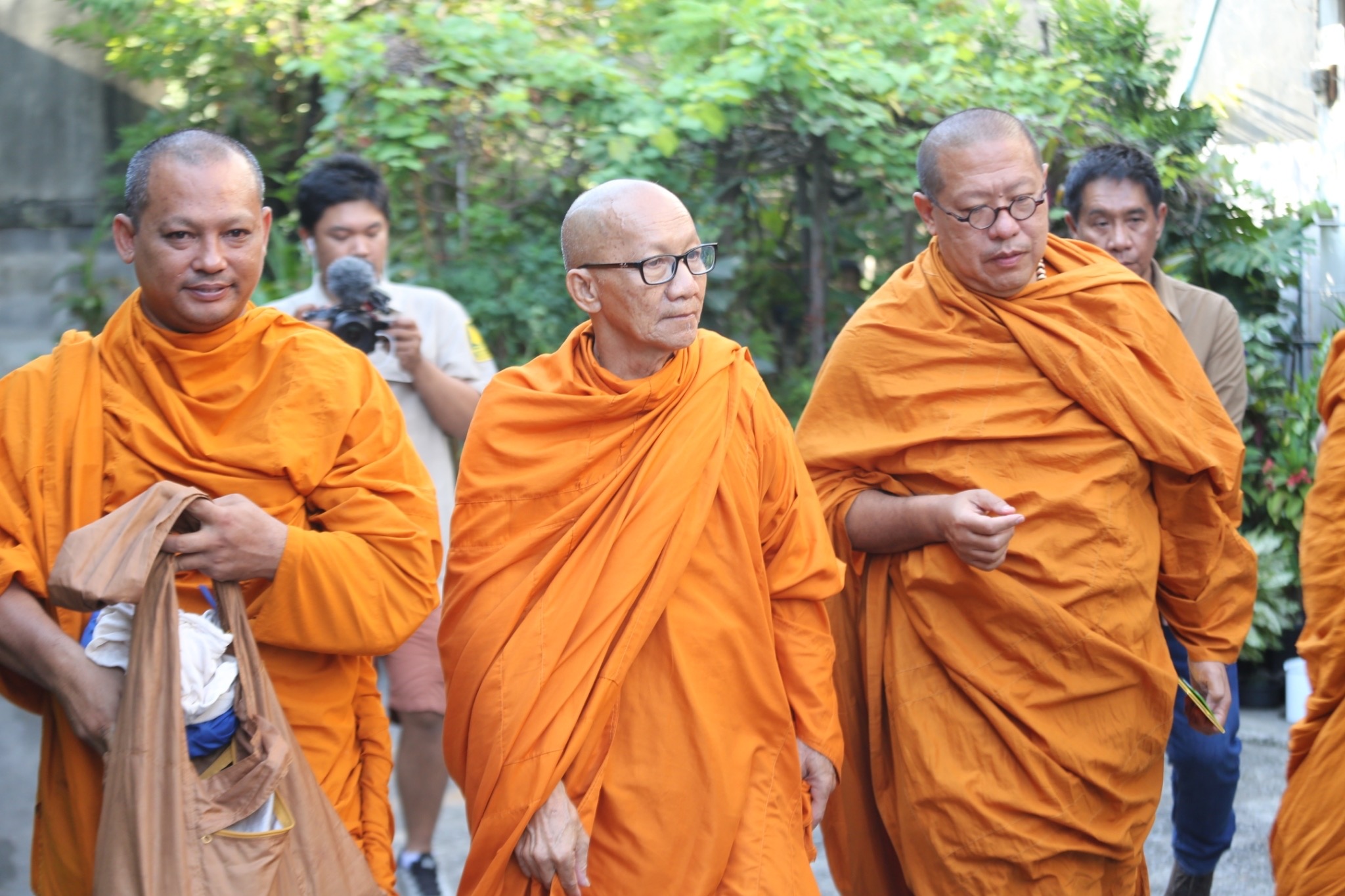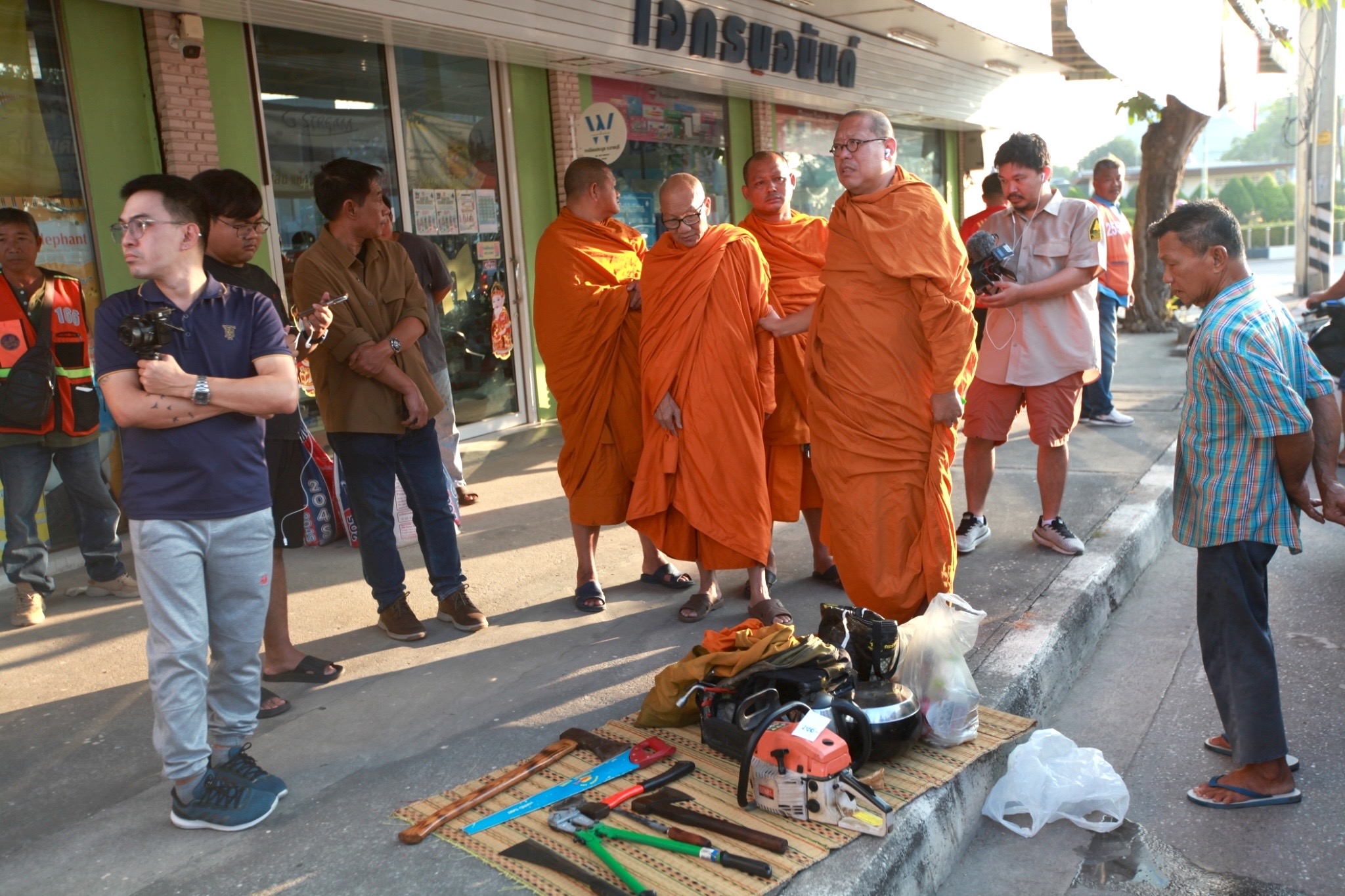 โดยเมื่อได้มีการตรวจค้นในรถ ยังพบเสื้อลายพรางสีเขียว อุปกรณ์ทำงานช่าง เป็นมีดยาว และขวาน จำนวนหลายชิ้น ซึ่งได้ประสานให้เจ้าหน้าที่ตำรวจตรวจสอบว่าเป็นอาวุธหรือไม่ ซึ่งทางเจ้าหน้าที่ระบุว่าเป็นเครื่องมือทางการเกษตรและงานช่าง ยังไม่ผิดข้อกล่าวหาใดๆทางกฏหมาย จากนั้นจึงได้ควบคุมตัวกลับมายังบ้านพัก และให้นำเอกสารต่างๆไปพบกับ พระครูทักษิณานุกิจ เจ้าคณะตำบลพระปฐมเจดีย์ เจ้าอาวาสวัดห้วยจระเข้ จังหวัดนครปฐม ทำการกล่าวโทษและสั่งการให้ลาสิกขา เนื่องจากทำผิดกฏฐานกับรถเป็นโลกะวัชชะ ซึ่งเป็นมาแล้วหลายครั้ง ซึ่งขณะที่ทำการสึกเสร็จสิ้น นายเรืองชัยได้แต่งกายด้วยชุดฆราวาส ก่อนจะมาลาเจ้าคณะตำบลพระปฐมเจดีย์ และหลวงพี่น้ำฝน โดยให้สัญญาต่อหน้าคณะเจ้าหน้าที่ที่ทำการจับกุมว่าไม่กลับมาก่อปัญหาอีก