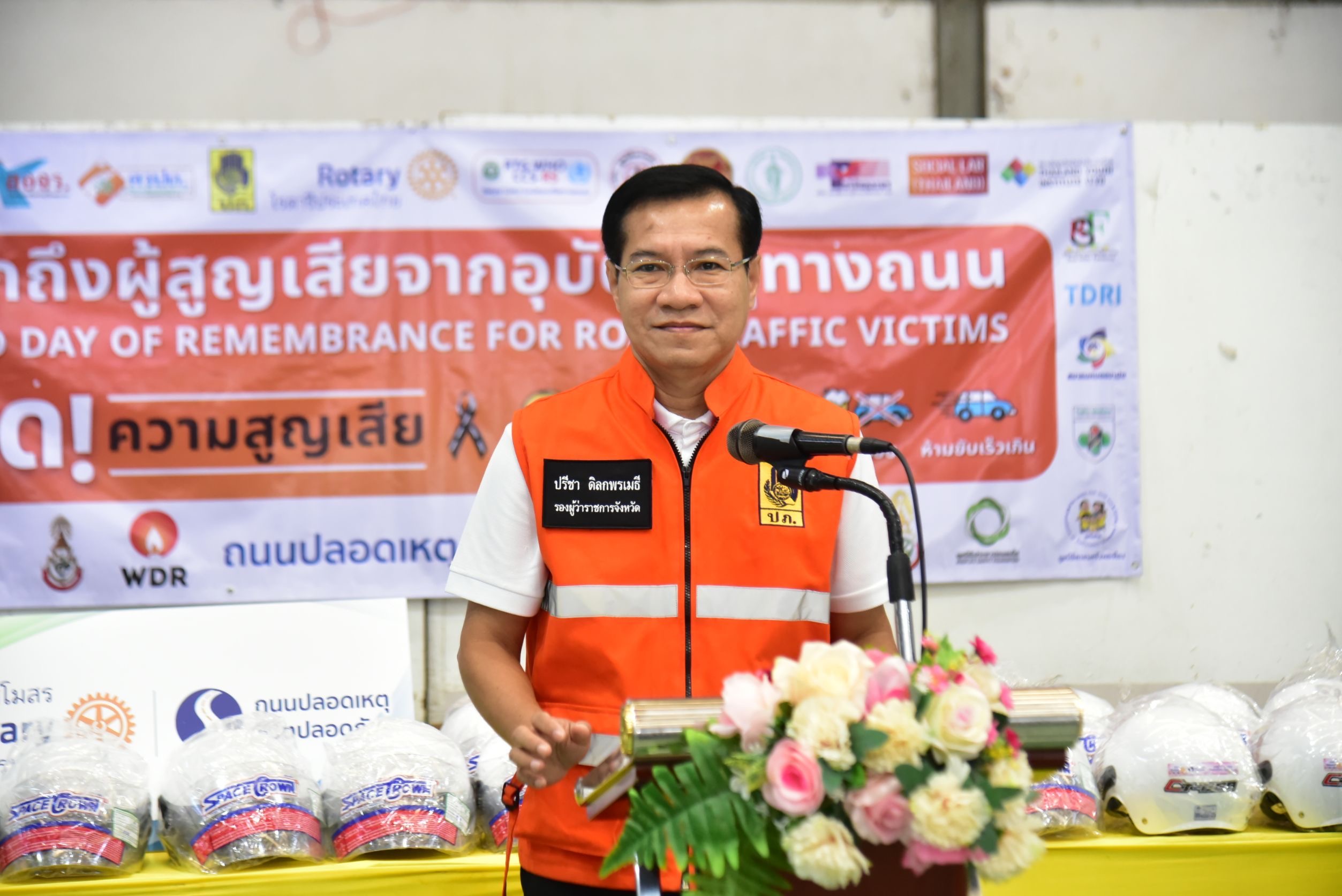 วันที่ 17 พฤศจิกายน 2567 เวลา 08.00 น. ที่หอประชุมสมาคมผู้สูงอายุในเขตเทศบาลนครนครปฐม ถนนราชดำริห์ ตำบลสนามจันทร์ อำเภอเมืองนครปฐม จังหวัดนครปฐม นายปรีชา ดิลกพรเมธีย รองผู้ว่าราชการจังหวัดนครปฐม เป็นประธานเปิดงาน วันโลกรำลึกถึงผู้สูญเสียจาอุบัติเหตุทางถนนเพื่อให้ถนนทุกสายในจังหวัดเป็น “ถนนปลอดเหตุ ชีวิตปลอดภัย” โดยนายฐิติพงศ์ วัฒนาอนันต์กุล นายกสโมสรโรตารีนครปฐม กล่าวว่า ศูนย์อำนวยการความปลอดภัยทางถนน ได้ประสานความร่วมมือระหว่างรัฐบาลไทย กับองค์การอนามัยโลกด้านความปลอดภัยทางถนน โรตารีประเทศไทยและหน่วยงานภาคีเครือข่าย ร่วมจัดกอจกรรมรณรงค์เนื่องในวันโลกรำลึกถึงผู้สูญเสียจากอุบัติเหตุทางถนน ประจำปี 2567 โดยจัดขึ้นทั้งในส่วนกลางและระดับจังหวัดพร้อมกันทั่วประเทศ