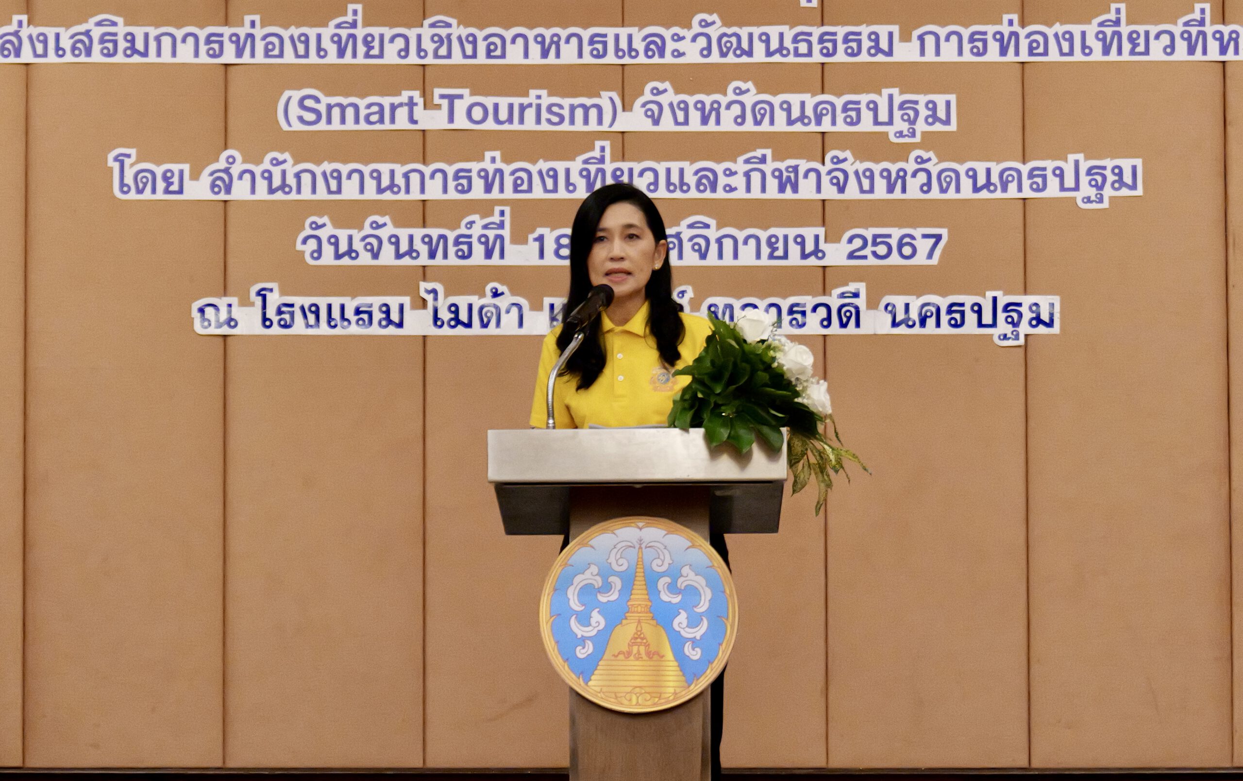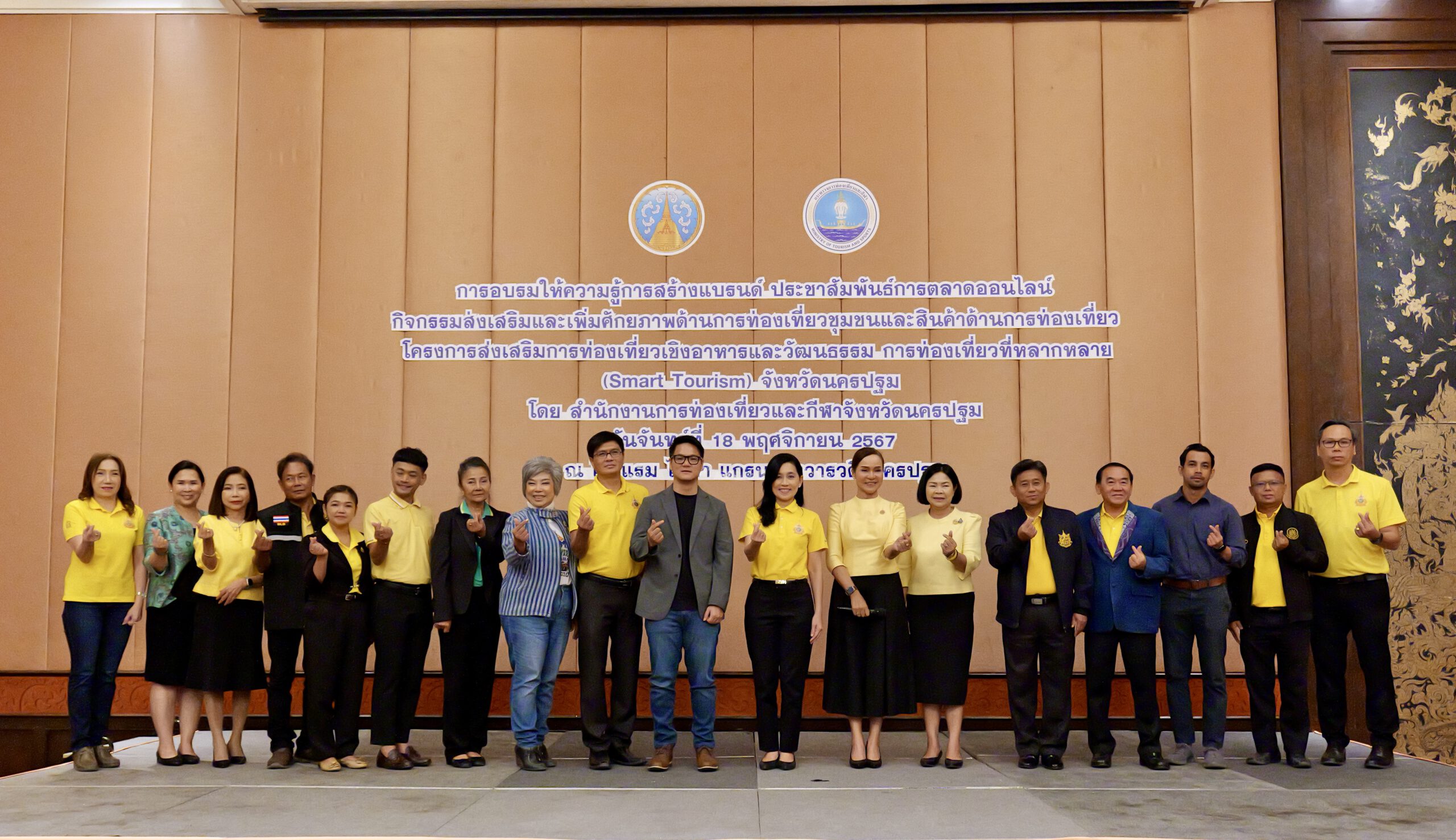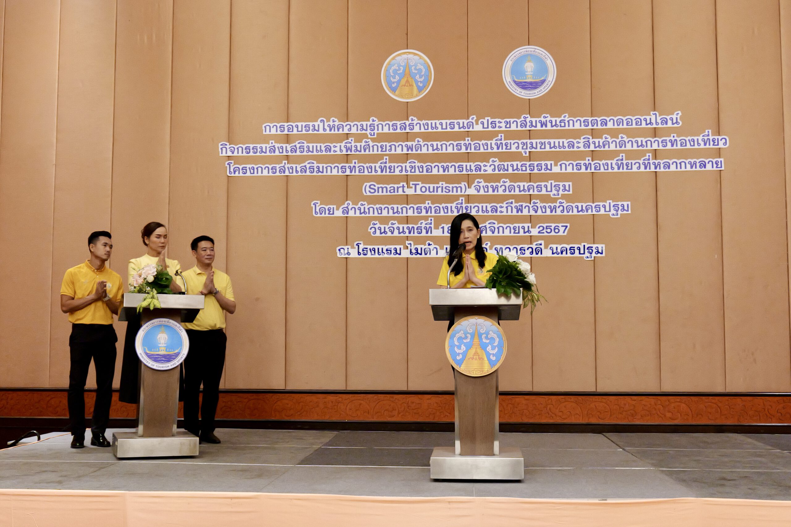 วันที่ 18 พฤศจิกายน พ.ศ.2567 ณ โรงแรมไมด้าแกรนด์ ทวารวดี นางสาว อโรชา นันทมนตรี รองผู้ว่าราชการจังหวัดนครปฐม รักษาราชการแทนผู้ว่าราชการจังหวัดนครปฐม เป็นประธานกล่าวเปิดการอบรมให้ความรู้การสร้างแบรนด์ การประชาสัมพันธ์การตลาดออนไลน์ ภายใต้โครงการส่งเสริมการการท่องเที่ยวเชิงอาหารและวัฒนธรรม การท่องเที่ยวที่หลากหลาย (Smart Tourism) จังหวัดนครปฐม และนางสาวกิรดา ลำโครัตน์ ท่องเที่ยวและกีฬาจังหวัดนครปฐม กล่าวรายงานวัตถุประสงค์