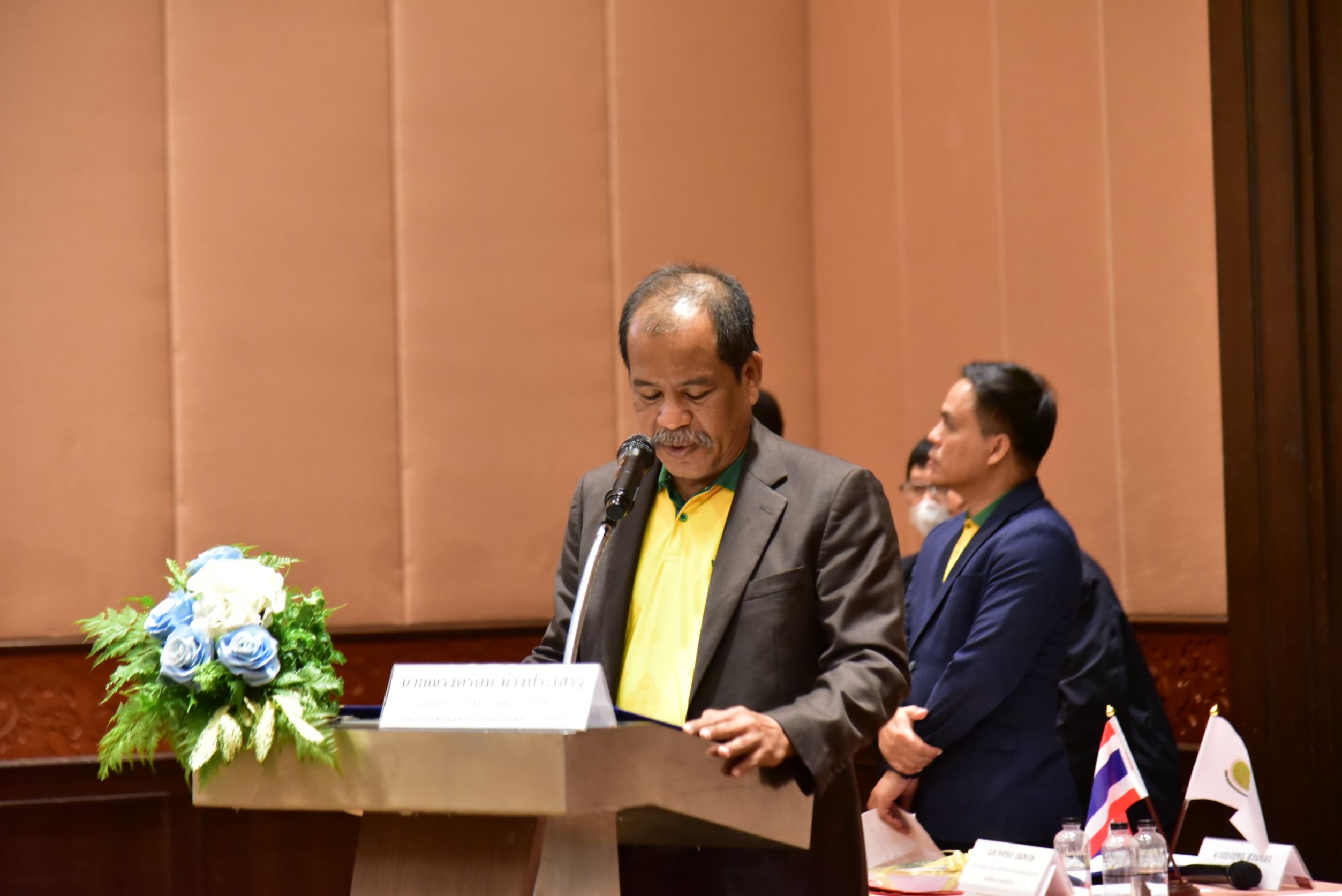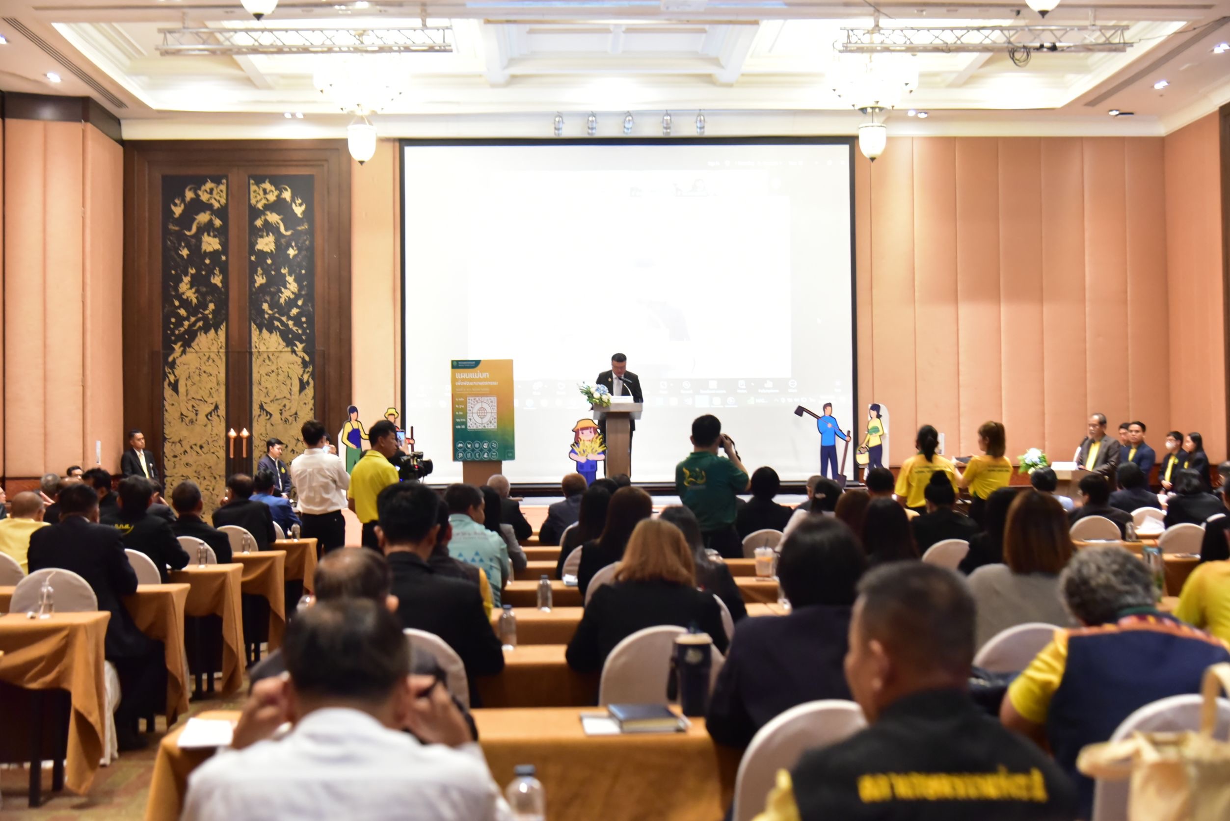 วันที่ 20 พฤศจิกายน 2567 ที่โรงแรมไมด้า แกรนด์ ทวารวดี อำเภอเมือง จังหวัดนครปฐม นายนัยฤทธิ์ จำเล ประธานสภาเกษตรกรแห่งชาติ เป็นประธานเปิดโครงการสัมมนา “การขับเคลื่อนแผนแม่บทเพื่อพัฒนาเกษตรกรรม ฉบับที่ 2 ไปสู่การปฏิบัติ” โดยมี นายยงยุทธ สวนทอง รองผู้ว่าราชการจังหวัดนครปฐม หัวหน้าส่วนราชการ ตลอดจนประธานสภาเกษตรกรจังหวัดภาคกลาง สมาชิกสภาเกษตรกรจังหวัดนครปฐม ผู้บริหารสำนักงานสภาเกษตรกรแห่งชาติ หัวหน้าสำนักงานสภาเกษตรกรจังหวัด หัวหน้าส่วนยุทธศาสตร์การเกษตร พนักงานสำนักงานสภาเกษตรกรจังหวัด และพนักงานสำนักงานสภาเกษตรกรแห่งชาติ รวมทั้งหน่วยงานที่เกี่ยวข้อง จำนวนรวมทั้งสิ้น 150 คน เข้าร่วมโครงการในครั้งนี้