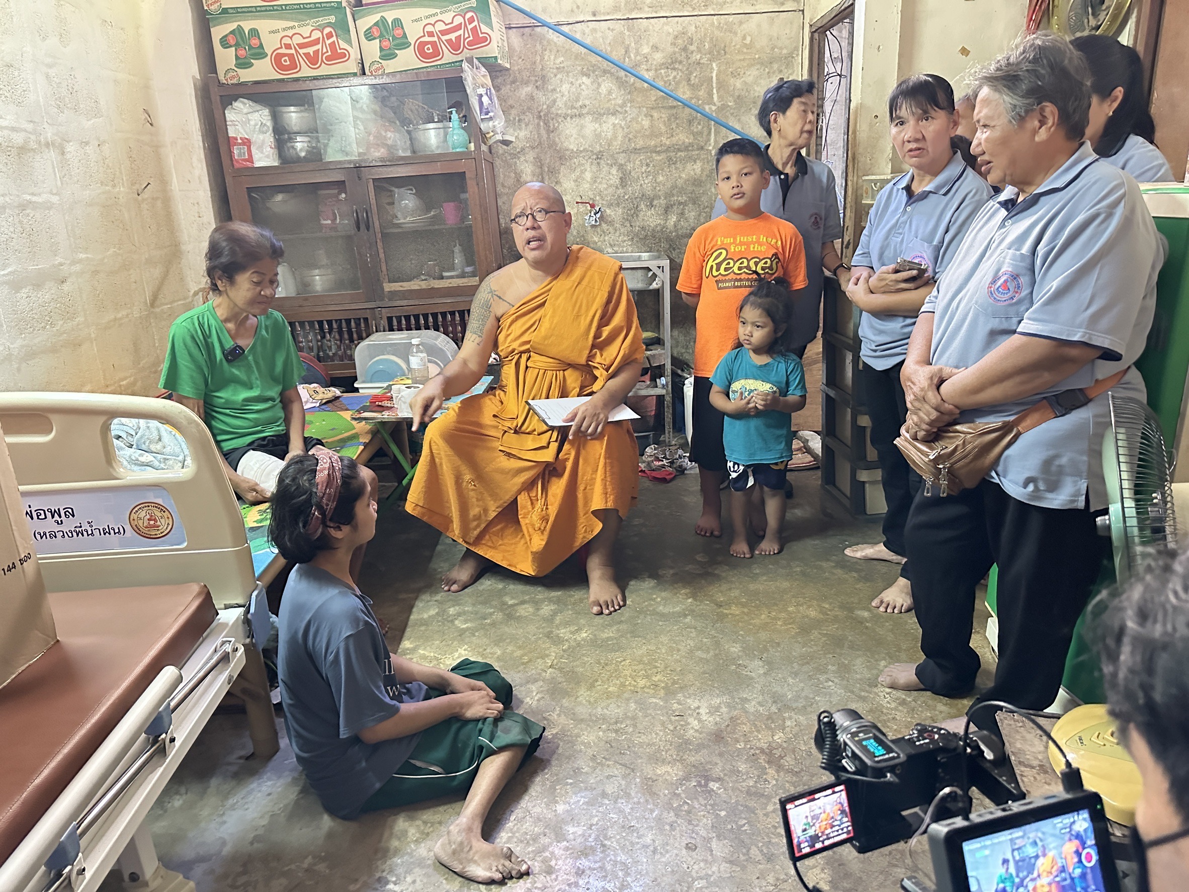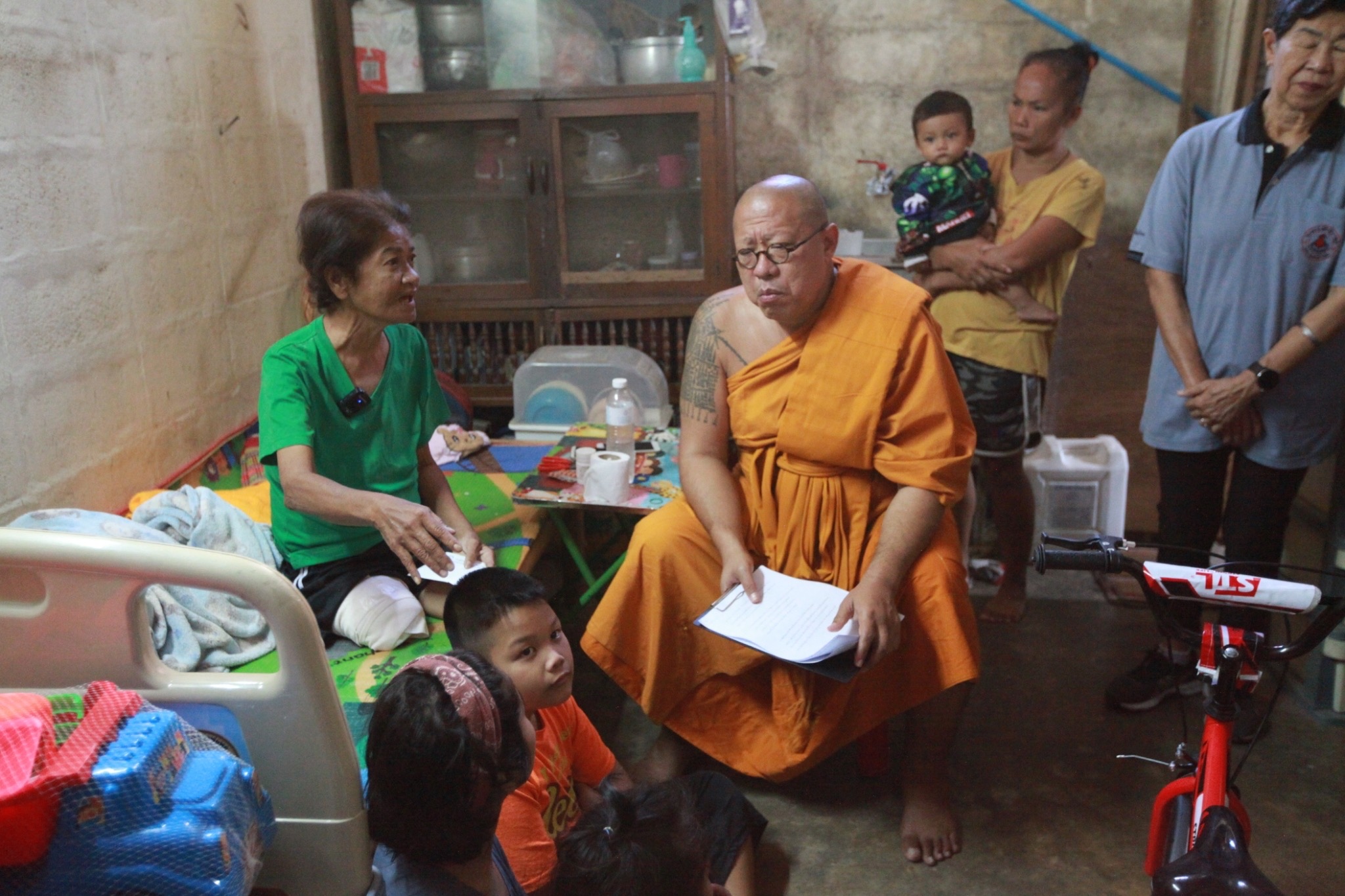 หลวงพี่น้ำฝน ไม่รอเวลา ทราบข่าวอดีต อสม.ป่วยหวานถูกตัดขาไร้งาน อาศัยในบ้านกลางเมืองนครปฐม ร่วมกับลูกสาวพิการเดินไม่ได้ พร้อมคนในบ้านอยู่รวมกัน 7 ชีวิต ต้องการเตียงสำหรับผู้ป่วยรุดให้กำลังใจจัดเตียงส่งถึงบ้านทันที อึ้งเข้าไปพบลูกสาวพิการเดินไม่ได้ตั้งแต่กำเนิด ต้องใช้แขนเดินแทนเท้า รีบประสานแพทย์โรงพยาบาลนครปฐม เข้าให้การช่วยเหลือให้ความรู้การมีผู้พิการในบ้าน 2 คน ที่มีหัวเรือหารายได้เพียงคนเดียวต้องอยู่อย่างไร พร้อมดำเนินการให้วัดไผ่ล้อมเป็นศูนย์กลางกระสานความเดือดร้อนของญาติโยม