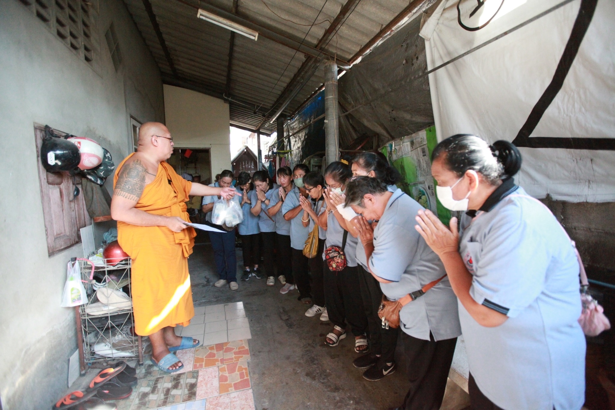 ขณะที่หลวงพี่น้ำฝน ได้ทำการสอบถามและเยี่ยมให้กำลังใจ พบว่า นางสาวพรยุพา เสถียรพานิช อายุ 27 ปี บุตรสาวของนางพรพิมล มีความพิการขาลีบทั้ง 2 ข้างต้องเคลื่อนตัวด้วยวิธีการพยุงร่างกายด้วยแขนทั้ง 2 ข้าง และไม่สามารถทำงานได้ ต้องอาศัยอยู่ร่วมกันกับแม่ในบ้านพักที่มีสถานที่จำกัด โดยหลวงพี่น้ำฝน ได้เตรียมประสานงานกับโรงพยาบาลนครปฐม เพื่อเตรียมให้ลงพื้นที่สำรวจการดูแลสุขภาพสำหรับทั้ง 2 คนเพื่อให้มีคุณภาพชีวิตที่ดีขึ้นได้โดยไม่เป็นภาระของคนในบ้านมากนัก