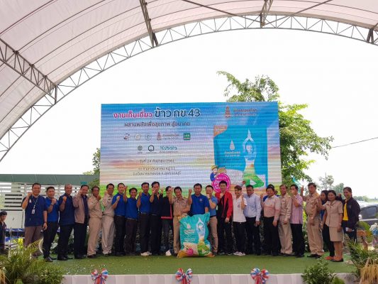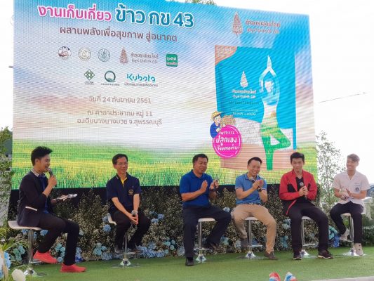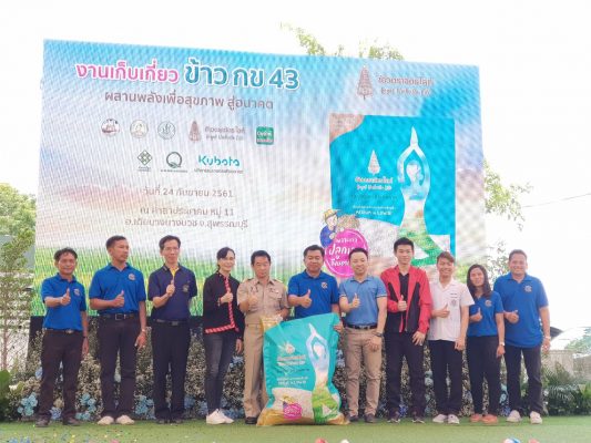 สุพรรณบุรี จับมือเอกชนขับเคลื่อนแปลงใหญ่ข้าวประชารัฐ เปิดตัวข้าวเพื่อสุขภาพ “เก็บเกี่ยวข้าว กข43 ผสานพลังเพื่อสุขภาพ สู่อนาคต”
