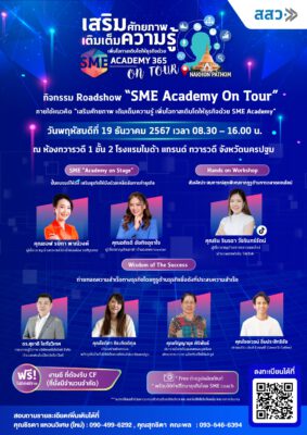ผู้ประกอบการ SME และผู้สนใจ สามารถเข้าร่วมกิจกรรม Roadshow “SME Academy On Tour” ครั้งที่ 11 จ.นครปฐมได้ ในวันพฤหัสบดีที่ 19 ธันวาคม 2567 ตั้งแต่เวลา 08.30 – 16.00 น.