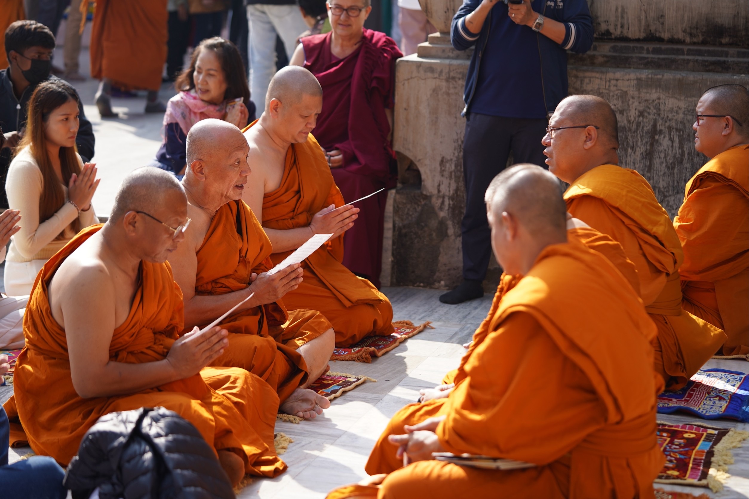 ภารกิลุล่วง จบทริปแสวงบุญ ศิษย์ร่วมขบวนตามรอยพระพุทธองค์ ปิติในบุญ หลวงพี่น้ำฝน เจ้าอาวาสวัดไผ่ล้อม นำคณะสงฆ์ศิษยานุศิษย์ ตั้งจิตอธิษฐานระลึกตั้งมั่นในพระธรรม เห็นต้นกำเนิดพระพุทธศาสนาเห็นความตั้งมั่นศรัทธาแห่งความดี