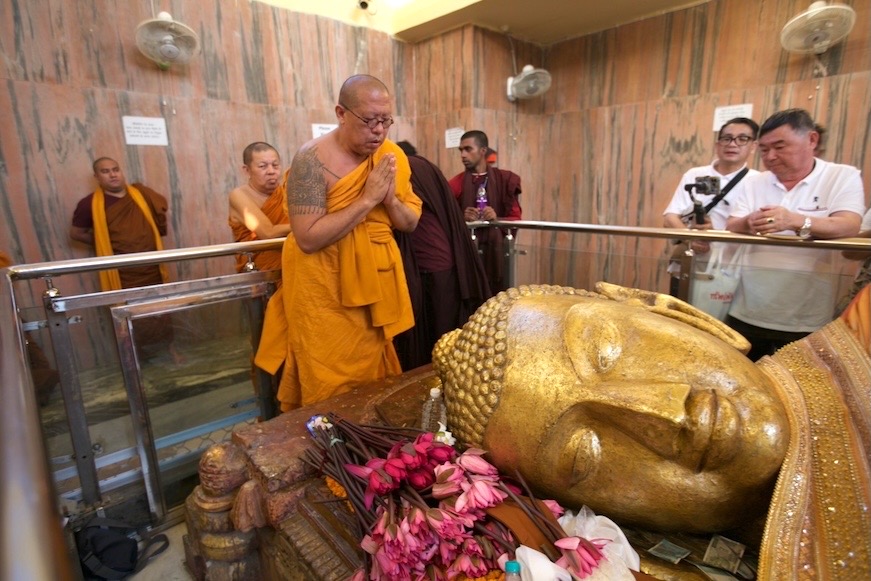 โดยตลอดเส้นทางการเดินทางยังนับจากวันที่ 4 หลังจากได้รายงานการเดินทางไปใน 3 วันแรก ทัพสายบุญวัดไผ่ล้อม ได้เดินออกจากเมือง ราชคฤห์ เข้าสู่เมืองกุสินารา เพื่อเข้ากราบสักการะสถานที่ปรินิพพาน ณ สาลโนทยาน ซึ่งเดิมเป็นอุทยานของพระเจ้ามัลละกษัตริย์ มีต้นสาละปลูกเป็นสัญลักษณ์หลายต้น และเข้ากราบนมัสการองค์ปรินิพพานสถูป ซึ่งอยู่ติดกับปรินิพพานวิหารพระพุทธปางไสยาสน์ เสด็จดับขันปรินิพพานขนาดใหญ่ ด้วยการสมาธิจิตภาวนา และชม มกุฏพันธเจดีย์ สถานที่ถวายพระเพลิง พระสรีระของพระพุทธเจ้า ซึ่งปัจจุบันเป็นเจดีย์ทรงกลม และกราบสักการะ วัดไทยกุสินาราเฉลิมราชย์ และออกเดินทางไปยังเมืองพาราณสี และล่องเรือในแม่น้ำคงคามหาทนี เพื่อชมสถานที่เผาศพโดยชาวอินเดีย เชื่อกันว่าแม่น้ำคงคาจะเป็นแม่น้ำสายพิเศษและสำคัญเนื่องมาจากเป็นแม่น้ำแห่งสรวงสวรรค์เป็นบันไดเชื่อมระหว่างโลกพิภพและการกลับสู่สวรรค์ดังปรากฏตำนานที่หลากหลายพร้อมทั้งเล่าขานทำให้ชาวอินเดียมีความปรารถนาอย่างแรงกล้าจนถือเป็นคำขอหรือคำสั่งเสียครั้งสุดท้ายขอให้ได้มานอนตายที่ข้างริมฝั่งแม่น้ำคงคา หากไม่เป็นได้ดังที่หวังขอกระดูกซึ่งเป็นของติดร่างกายนี้ได้มาถูกลอยลงในแม่น้ำคงคาเพื่อปลดเปลื้องบาปทั้งปวงก่อนกลับคืนสู่สวรรค์ตามความเชื่อนั้น โดยเฉพาะแม่น้ำคงคาที่ไหลผ่านเมืองพาราณาสี รัฐอุตรประเทศ แห่งนี้เท่านั้น ว่ากันว่า จำนวนศพที่ถูกหามกันมาในแต่ละวันตลอด 24 ชั่วโมงทำให้เมืองพาราณาสี ได้ถูกขนานนามว่า “นครแห่งแสงไฟ” เพราะสาเหตุที่ว่าแสงไฟอันเกิดจากการเผาศพที่ถูกจุดต่อเนื่องกันไม่มีวันดับเป็นระยะเวลากว่า 5,000 ปีและถูกเรียกอีกชื่อหนึ่งว่า “เมืองแห่งความตาย” โดยมีพิธีการบูชาไฟ หรือพิธีอารตี ที่ชาวฮินดู ซึ่งเป็นการถวายไฟต่อพระผู้เป็นเจ้า โดยทุกค่ำคืนจะมีผู้คนนับหมื่นเข้ามาชมพิธีและความงดงามที่ริมแม่น้ำคงคง