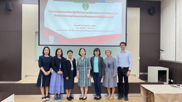 การจัดโครงการอบรมด้านจริยธรรมการวิจัยในมนุษย์ สำหรับคณะอนุกรรมการจริยธรรมการวิจัยในมนุษย์ครั้งนี้ เนื่องจากหน่วยจริยธรรมการวิจัยในมนุษย์ มหาวิทยาลัยราชภัฏนครปฐม ได้ตระหนักถึงความจำเป็นในการเรียนรู้จริยธรรมที่เกี่ยวข้องกับงานวิจัยอย่างหลากหลาย อย่างรู้เท่าทันกับการเปลี่ยนแปลงที่เกิดขึ้น เป็นการให้ความรู้เกี่ยวกับจริยธรรมการวิจัยผลิตภัณฑ์สมุนไพรและกฎระเบียบที่เกี่ยวข้อง ซึ่งมีความสำคัญอย่างยิ่ง เนื่องจากการวิจัยเกี่ยวกับสมุนไพรไม่เพียงแต่เกี่ยวข้องกับการพัฒนาผลิตภัณฑ์ใหม่ๆ แต่ยังส่งผลกระทบต่อสุขภาพของผู้บริโภคและสิ่งแวดล้อม อีกด้วย ได้แก่ 1) ด้านความปลอดภัยของผู้บริโภค เนื่องจากผลิตภัณฑ์สมุนไพรที่ไม่ผ่านการวิจัยอย่างมีจริยธรรมอาจมีผลข้างเคียงที่อันตรายหรือมีสารพิษที่เป็นอันตรายต่อผู้บริโภค จึงจำเป็นต้องมีการทดสอบและประเมินความเสี่ยงอย่างรอบคอบ 2) การเคารพสิทธิของผู้ที่มีส่วนร่วมในการวิจัย เป็นการเคารพสิทธิในการได้รับข้อมูลอย่างชัดเจนเกี่ยวกับวัตถุประสงค์ของการวิจัย การยินยอมอย่างเต็มใจ (informed consent) และการรักษาความลับเป็นสิ่งที่สำคัญที่สุด 3) การป้องกันการทุจริตทางวิทยาศาสตร์ เพื่อป้องกันการบิดเบือนข้อมูล หรือการเผยแพร่ผลวิจัยที่ไม่ได้รับการยืนยัน ซึ่งอาจนำไปสู่การตัดสินใจที่ผิดพลาดและอันตรายต่อผู้บริโภคได้ 4) การปกป้องสิ่งแวดล้อม เช่น การทำลายทรัพยากรธรรมชาติ การปลูกพืชสมุนไพรที่ไม่ยั่งยืน หรือการใช้สารเคมีในการผลิตสมุนไพร จึงจำเป็นต้องมีการควบคุมและกำหนดมาตรฐานในการวิจัยเพื่อป้องกันผลกระทบที่อาจเกิดขึ้น