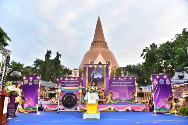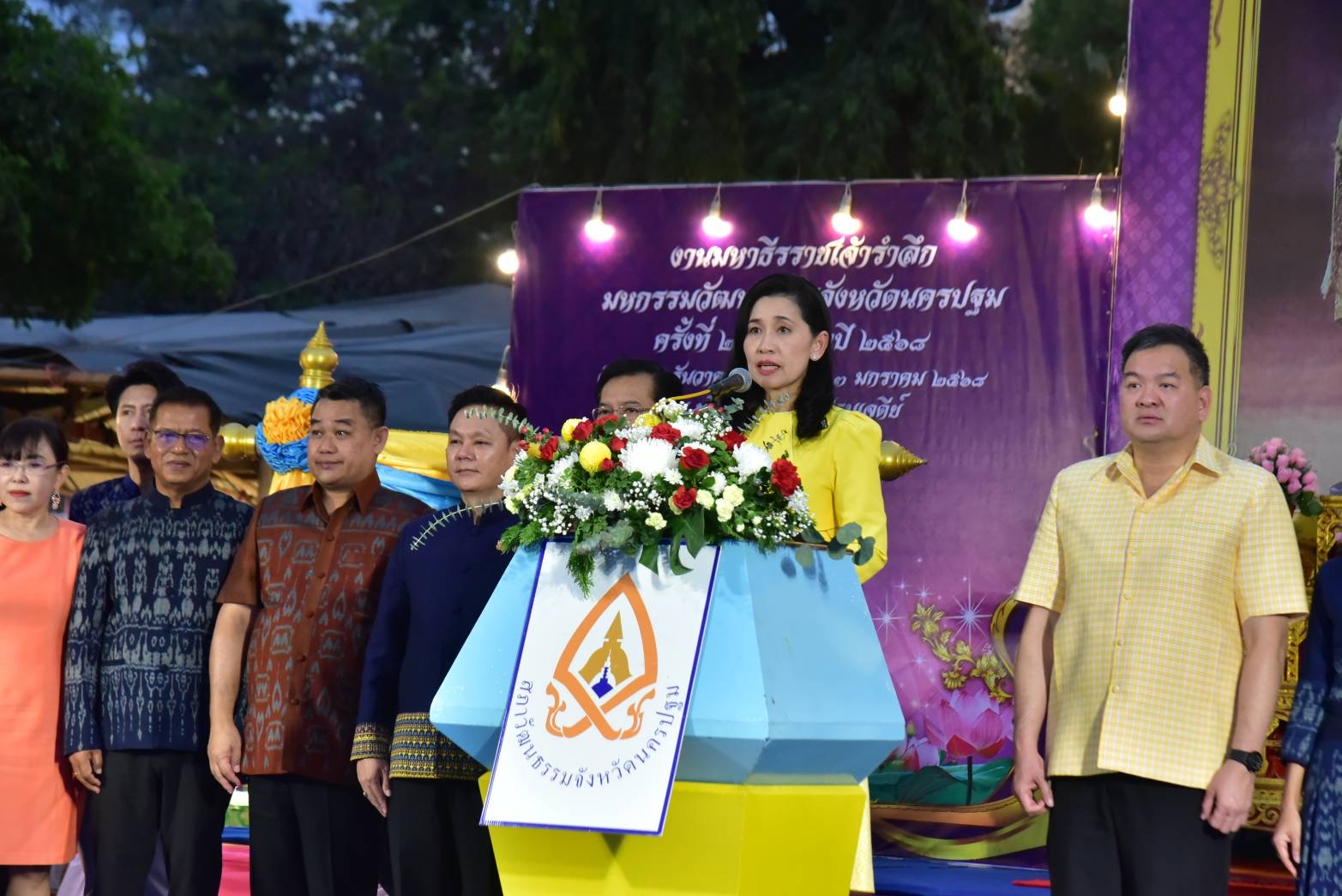 วันที่ 26 ธันวาคม 2567 ที่บริเวณลานหน้าพระร่วงโรจนฤทธิ์ฯ องค์พระปฐมเจดีย์ อำเภอเมืองนครปฐม จังหวัดนครปฐม นางสาวอโรชา นันทมนตรี รองผู้ว่าราชการจังหวัดนครปฐม รักษาราชการแทนผู้ว่าราชการจังหวัดนครปฐม พร้อมด้วยรองผู้ว่าราชการจังหวัดนครปฐม รองนายกเหล่ากาชาดจังหวัดนครปฐม หัวหน้าส่วนราชการ ข้าราชการ ผู้นำท้องถิ่น กำนันผู้ใหญ่บ้าน ผู้นำชุมชน นักเรียน นักศึกษา และประชาชนจากทั้ง 7 อำเภอ ร่วมเปิดงานมหาธีรราชเจ้ารำลึก มหกรรมวัฒนธรรมจังหวัดนครปฐม ครั้งที่ 20 ประจำปี 2567